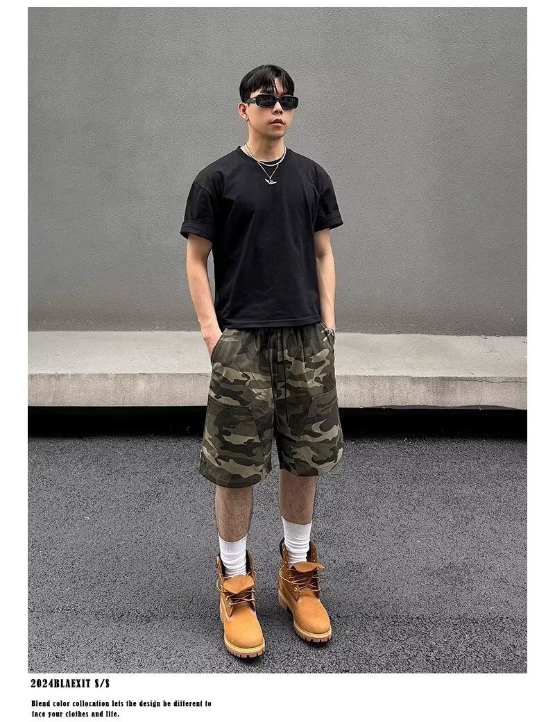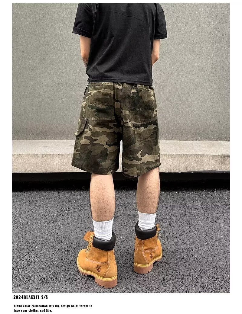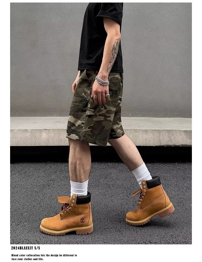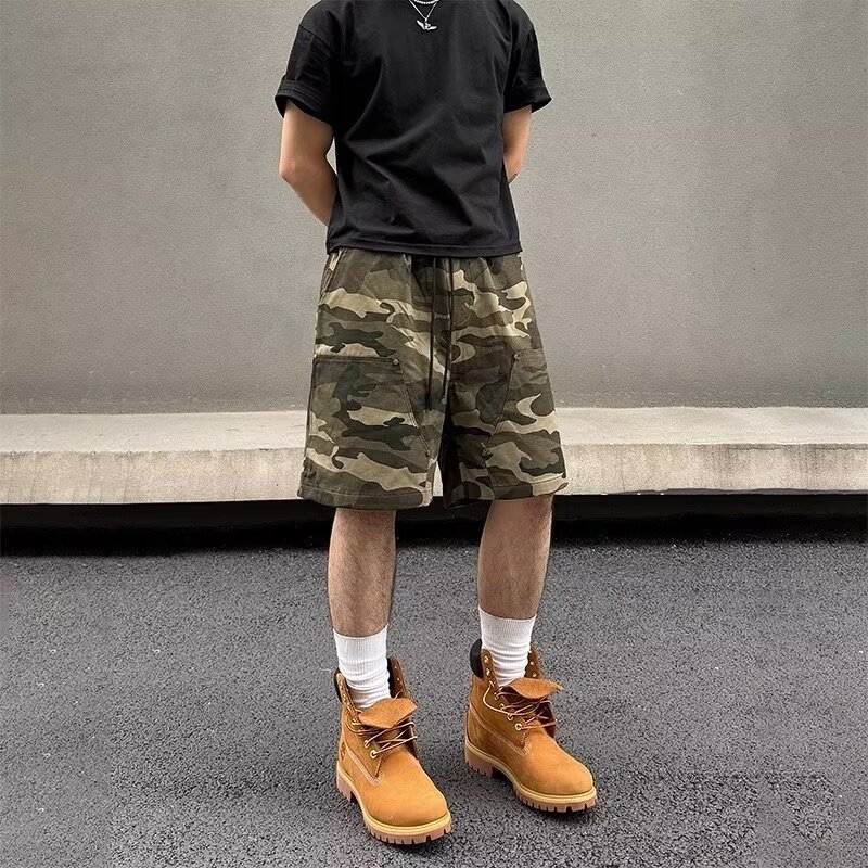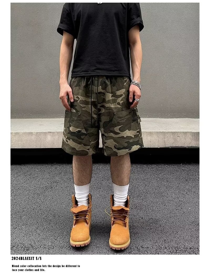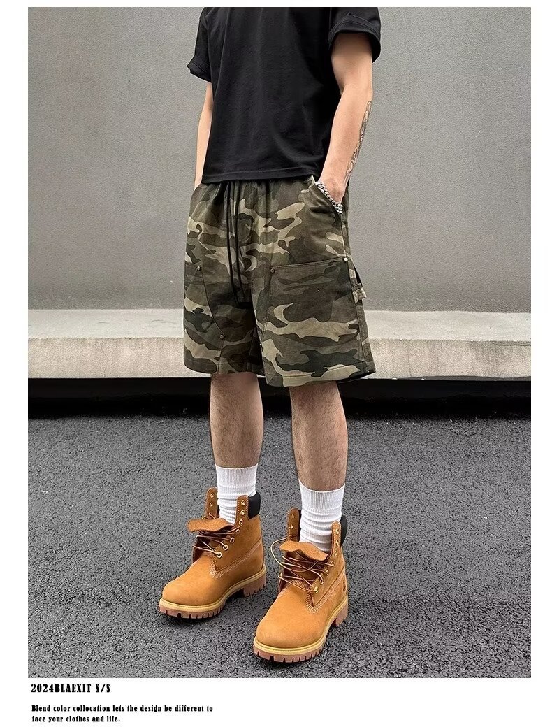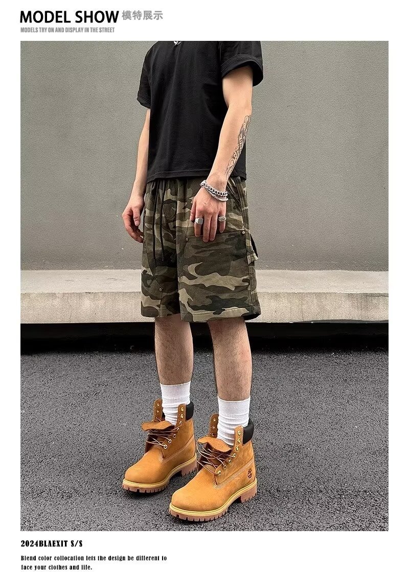 2024 아메리칸 스타일 레트로 위장 도구 반바지 남성용 트렌디 브랜드 스트레이트 루즈 캐주얼 바지 여름 바지스토어 가기