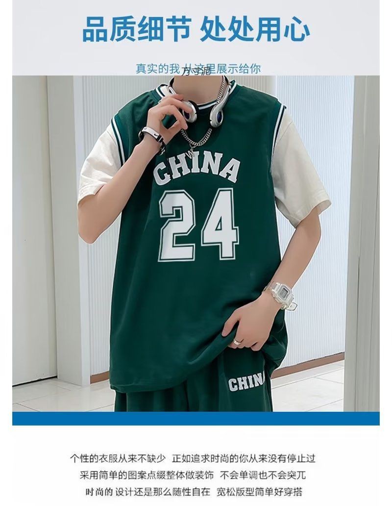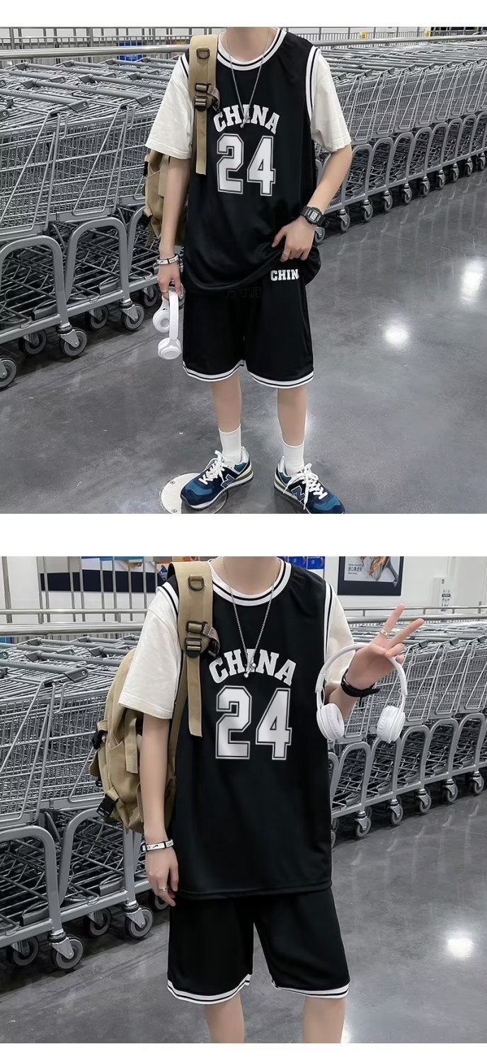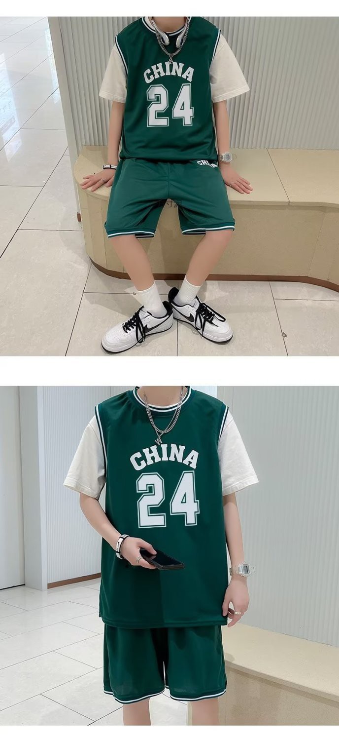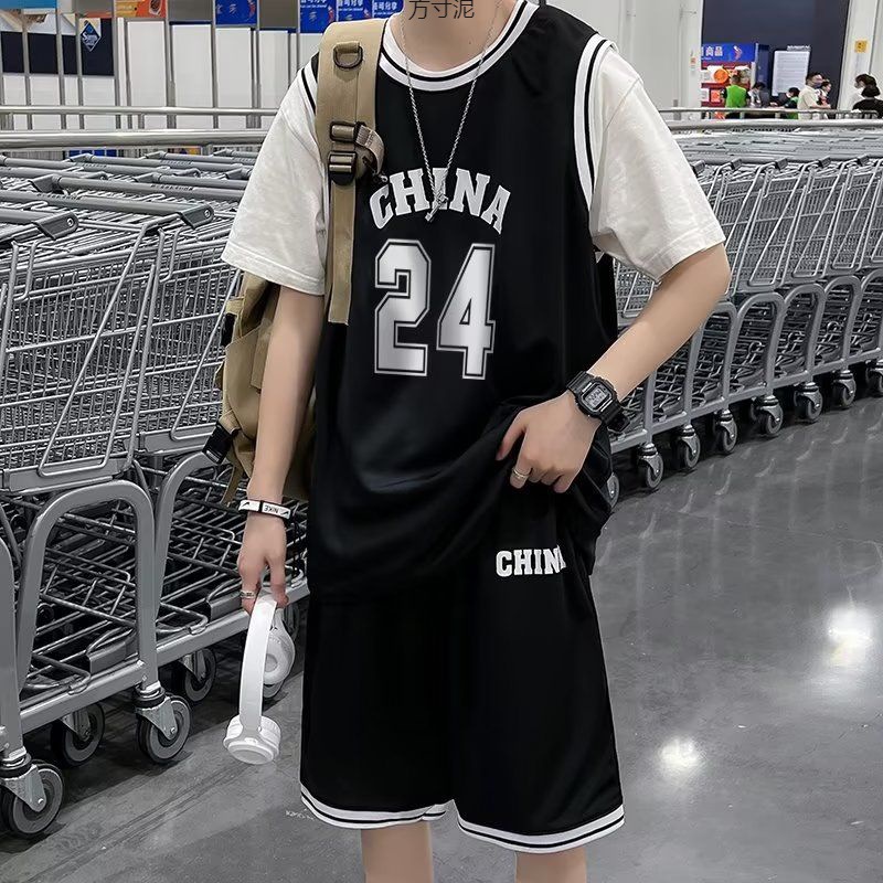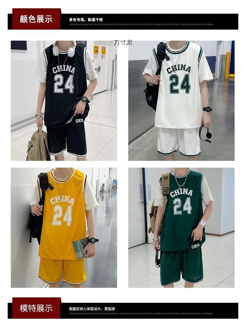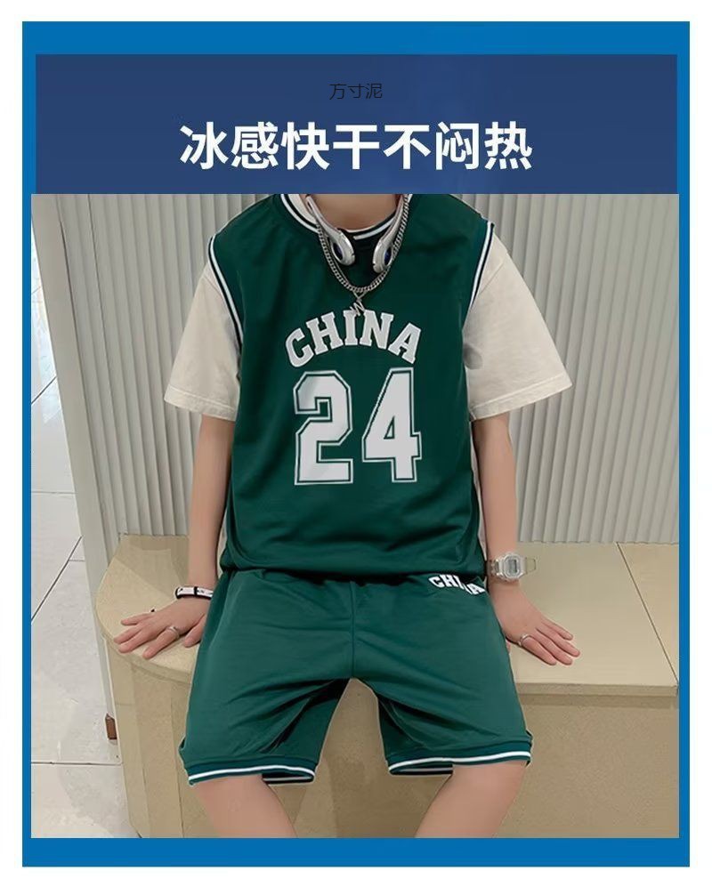 2024 새로운 농구 유니폼 남자 세트 중소형 옷 가짜 투피스 저지 학생 여름 스포츠 회의 수업 옷 도매스토어 가기