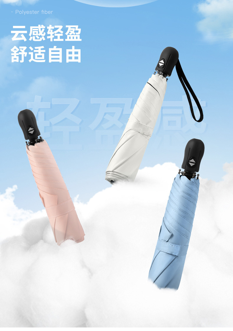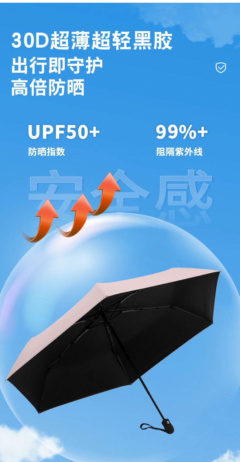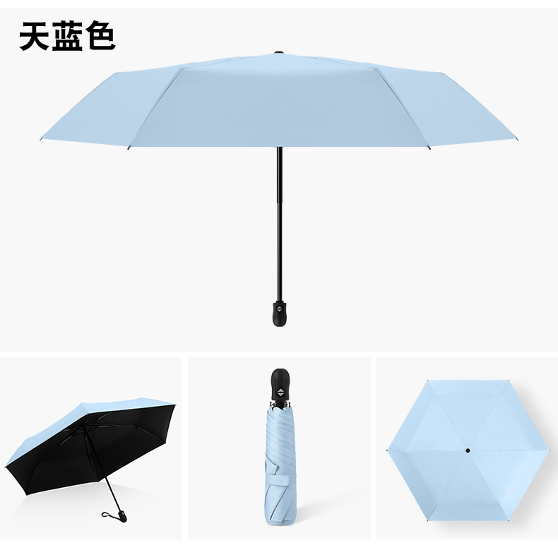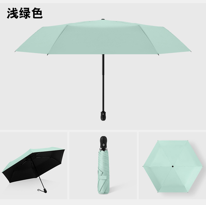 일본과 한국 폭발성 트라이 폴드 초경량 자동 우산 30D 초박형 풀 쉐이딩 블랙 테이프 국경 전자 상거래 미니 태양 우산