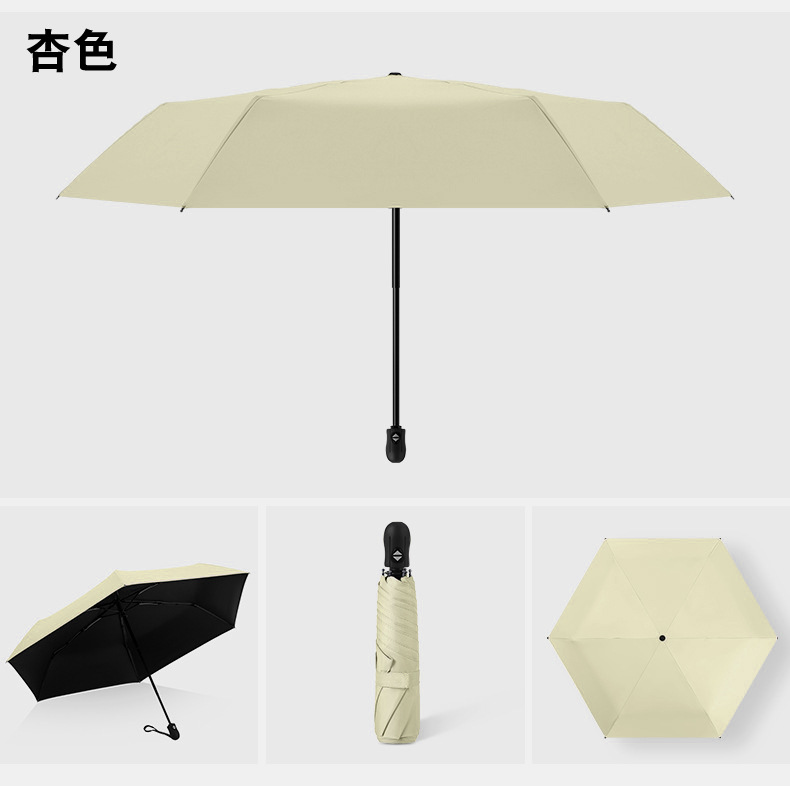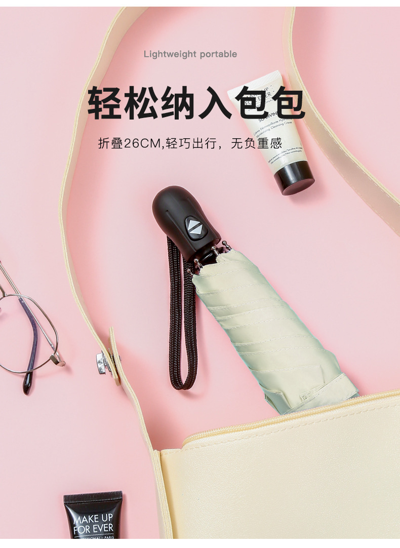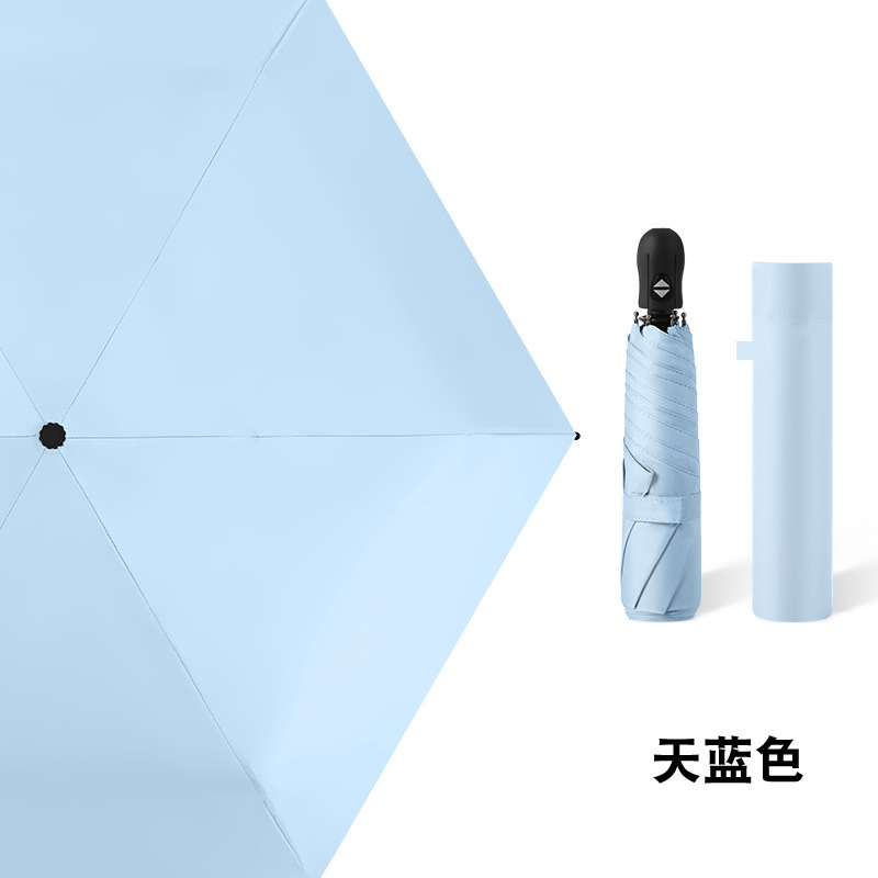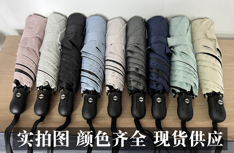 일본과 한국 폭발성 트라이 폴드 초경량 자동 우산 30D 초박형 풀 쉐이딩 블랙 테이프 국경 전자 상거래 미니 태양 우산스토어 가기