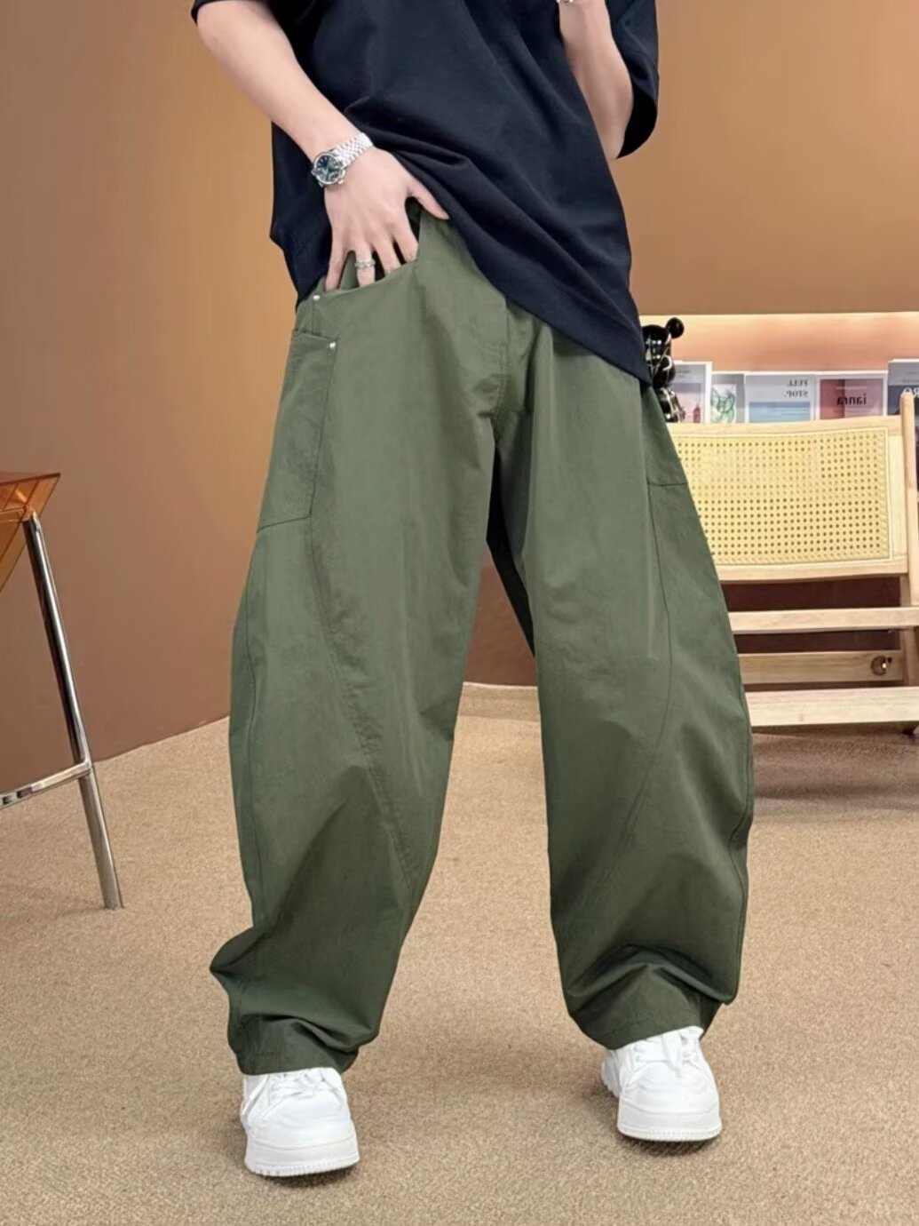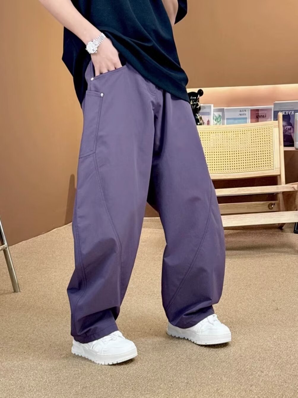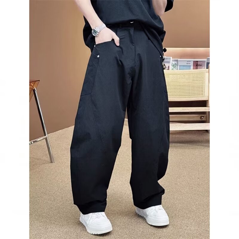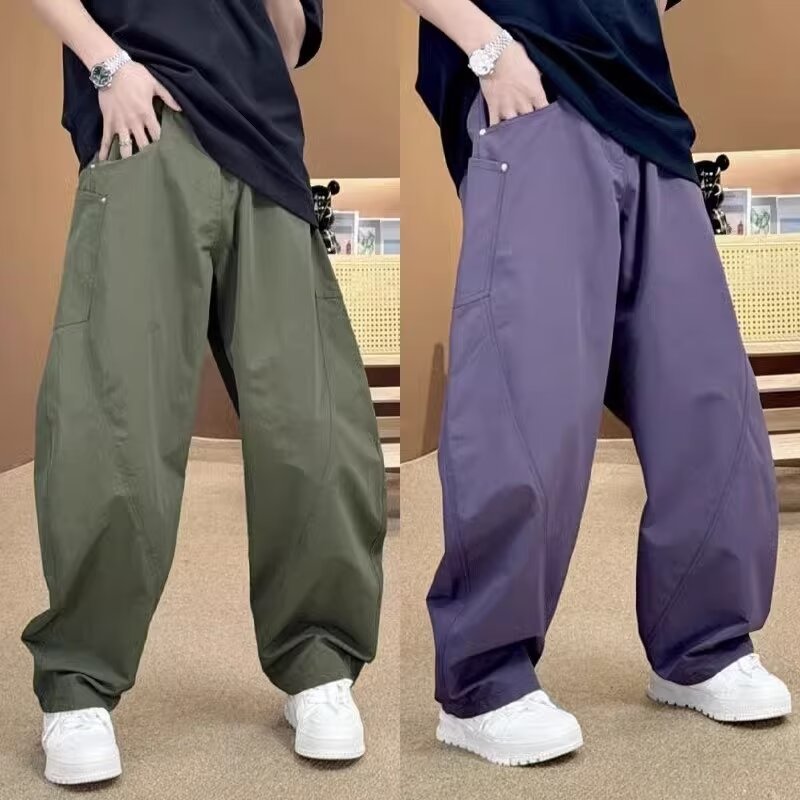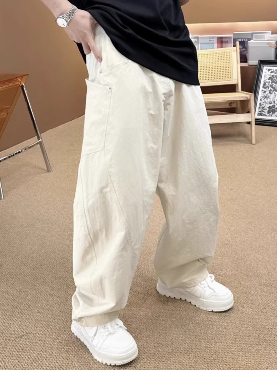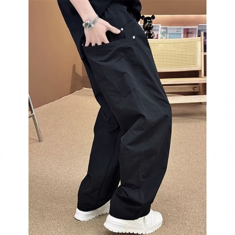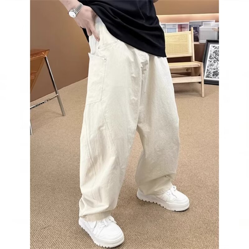 미국 복고풍 하이 스트리트 바지 남성용 스트레이트 와이드 레그 캐주얼 팬츠 2024 새로운 패션 인 바지스토어 가기