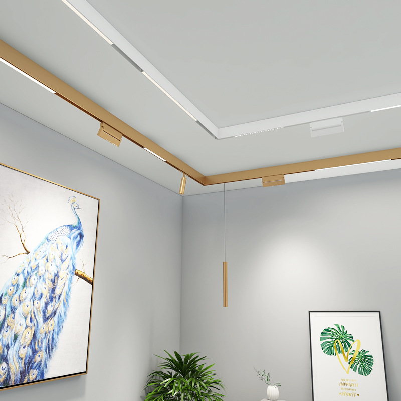 맞춤형 골드 마그네틱 트랙 조명 내장형 메인 램프 없음 홈 레일 조명 스마트 표면 장착형 마그네틱 트랙 화이트스토어 가기