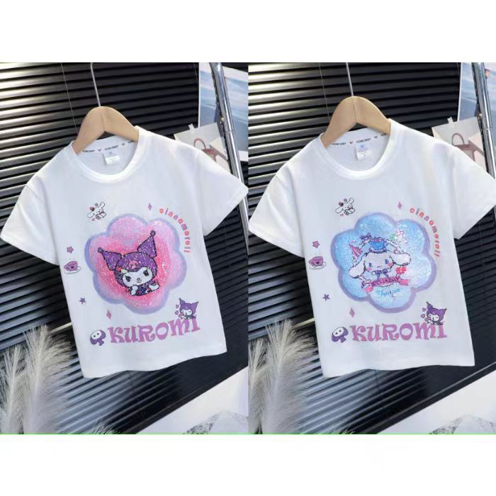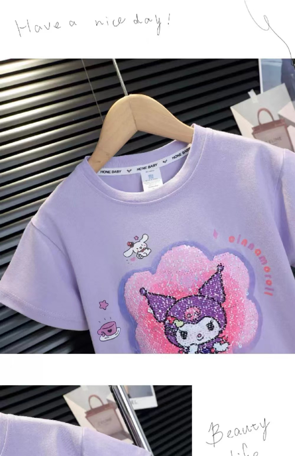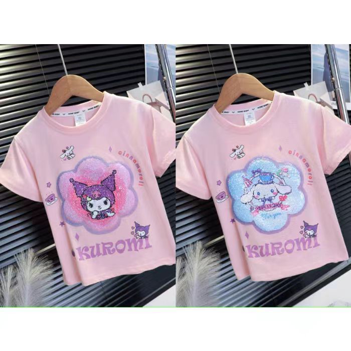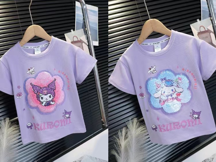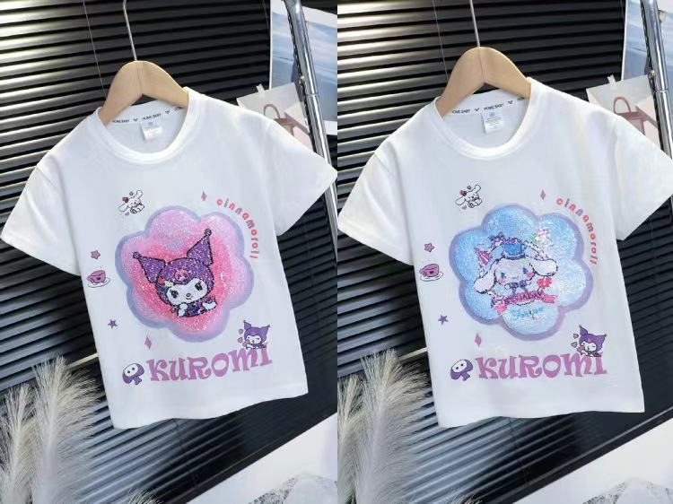 소녀 반소매 코튼 티셔츠 여름 2024 새로운 도착 서양식 색상 변경 Kulomi Sequin Top Cute스토어 가기