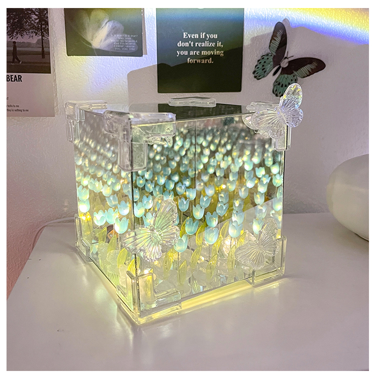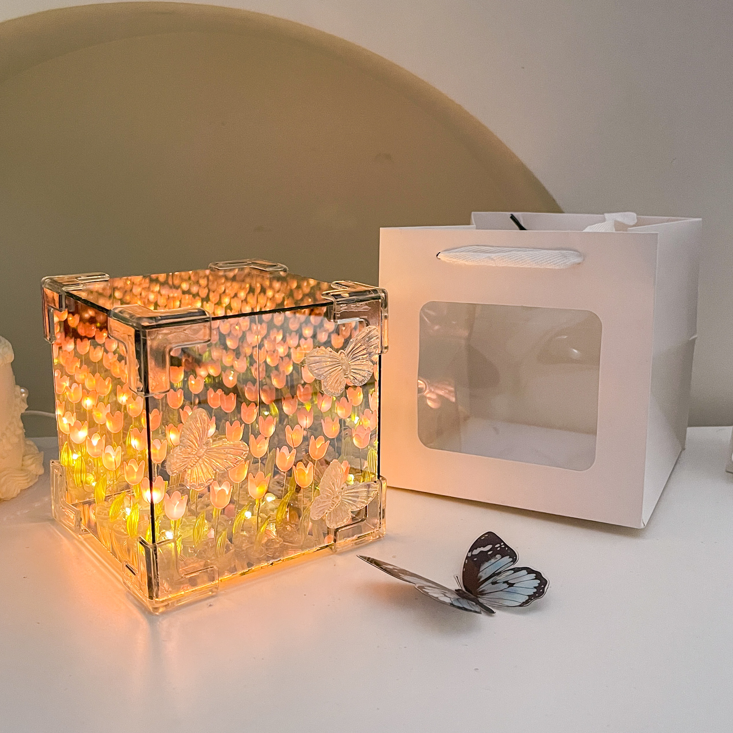 루빅스 큐브 튤립 나이트 라이트 여자 생일 선물 여자 친구의 졸업 꽃 바다 완성 손 선물