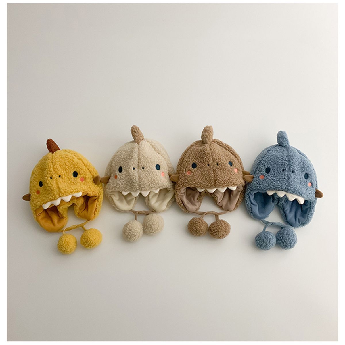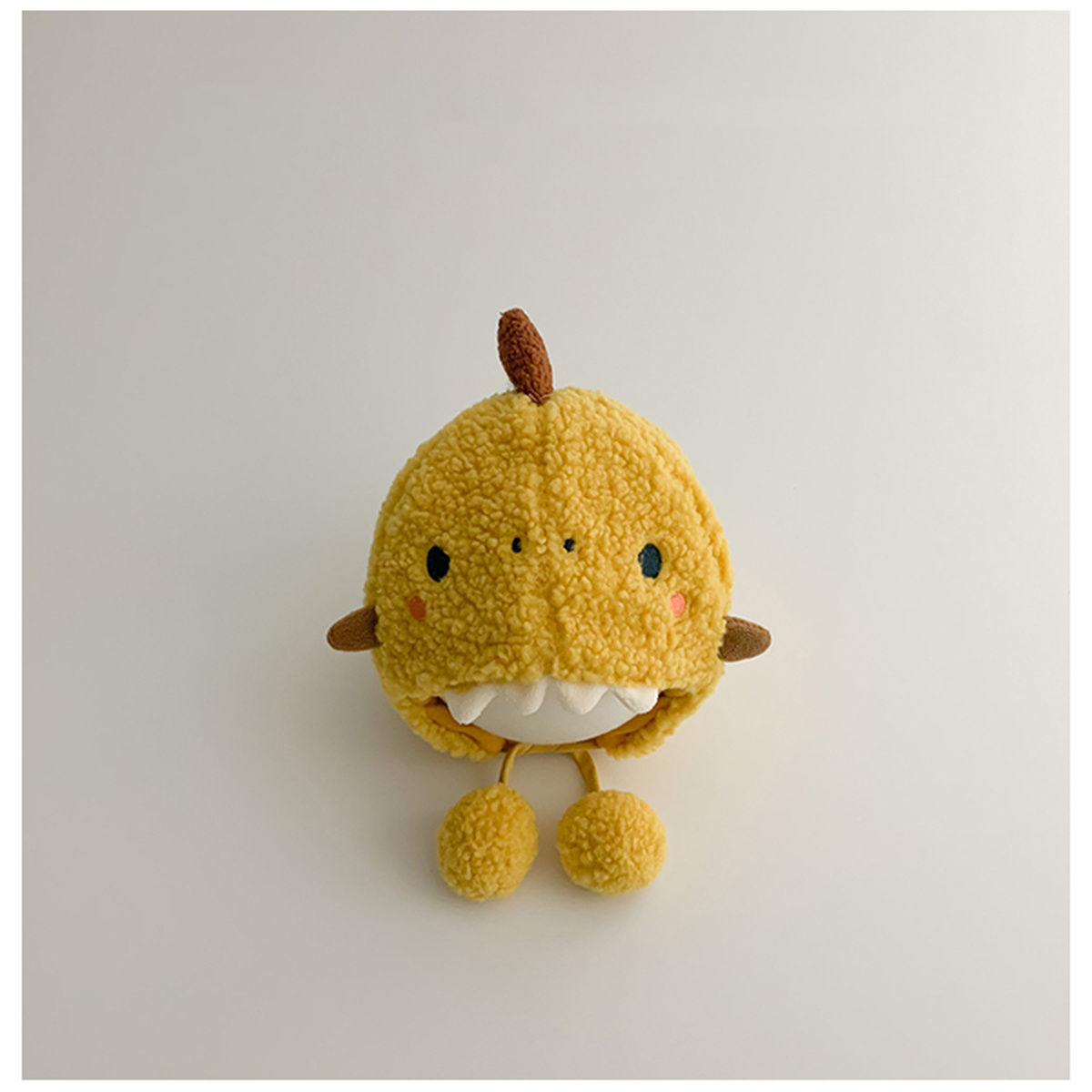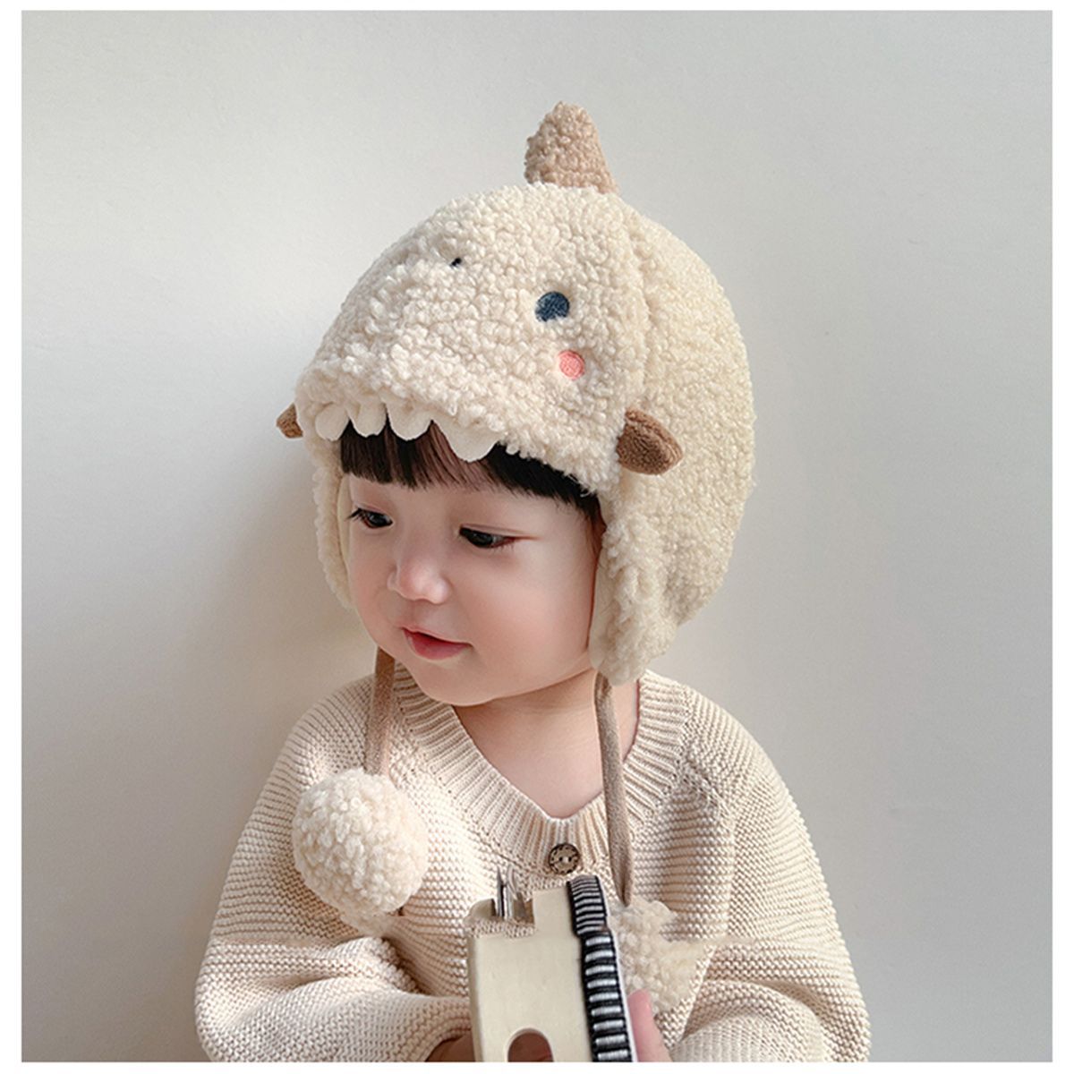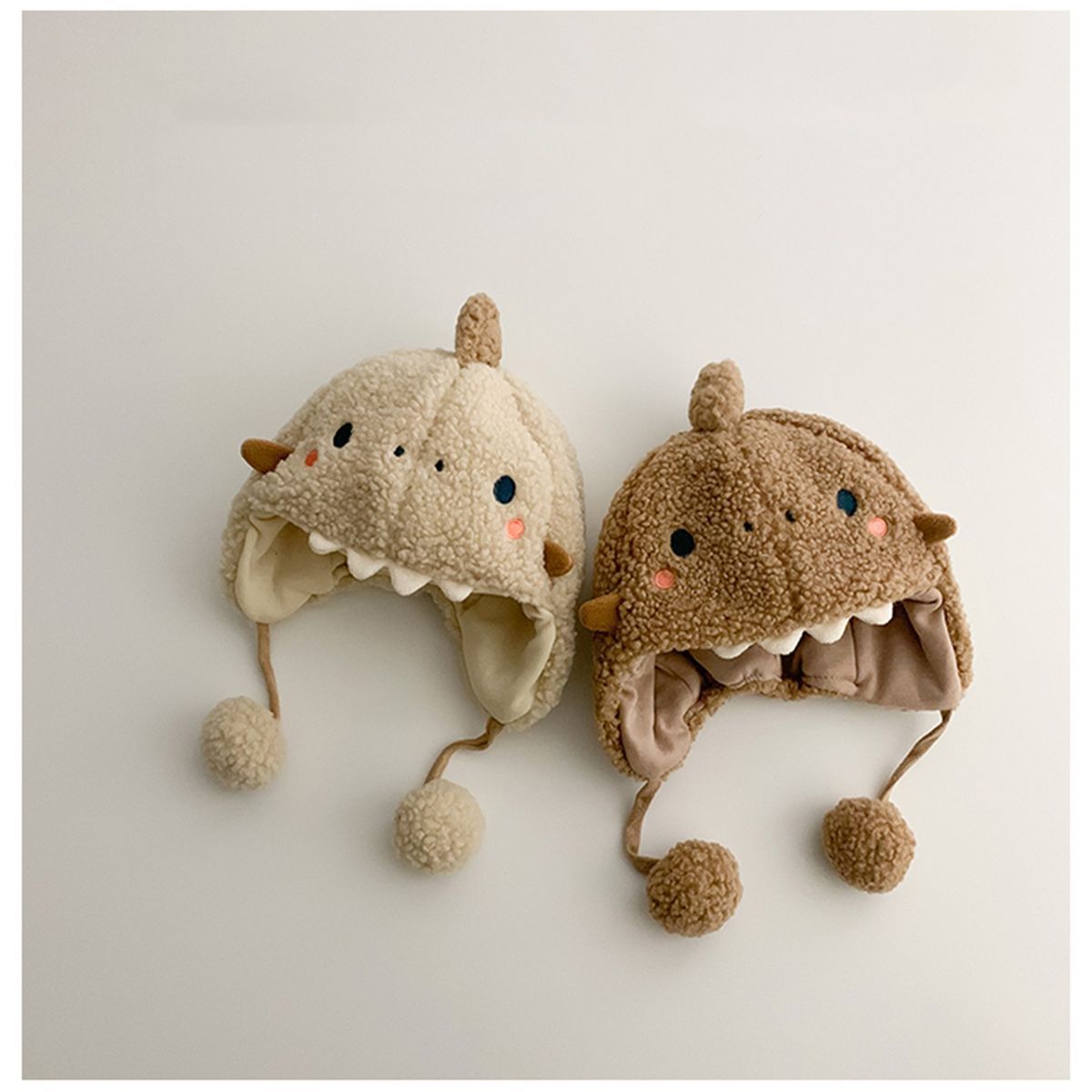 • 베이지 색 눈 노출 된 치아 용 양모 매달려있는 볼 스트랩 귀 보호 캡
