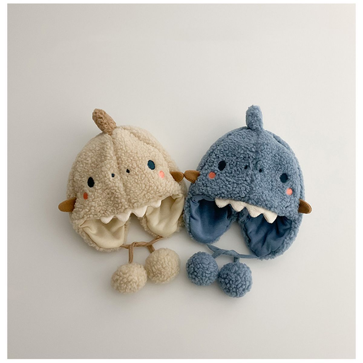 • 푸른 녹색 눈 노출 된 치아 용 양모 매달려 볼 스트랩 귀 보호 캡