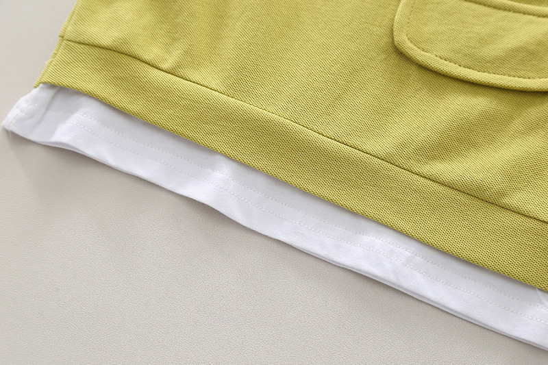 • 녹색 치킨 하트 칼라 짧은 소매 가짜 두 조각