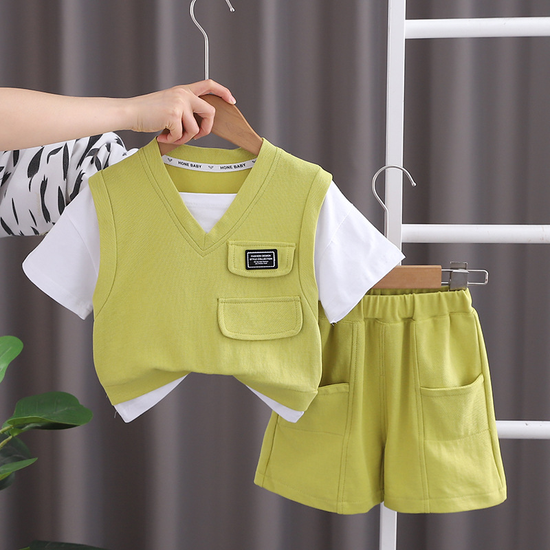 남학생 여름 세트 2024 년 새 어린이 반팔 옷 한국식 캐주얼 투피스 유행