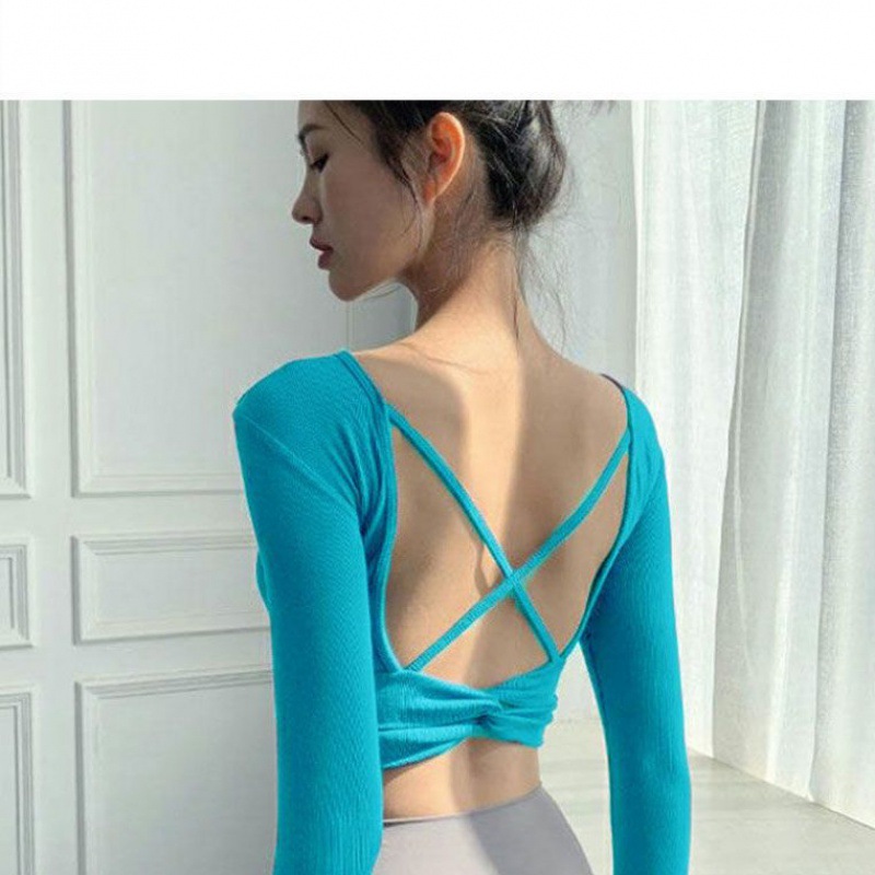 인터넷-유명한 요가 의류 가을 최고 여성 긴팔 전문 하이 엔드 스포츠 달리기 최고 가슴 패드와 함께 아름다운 등 피트니스 옷스토어 가기