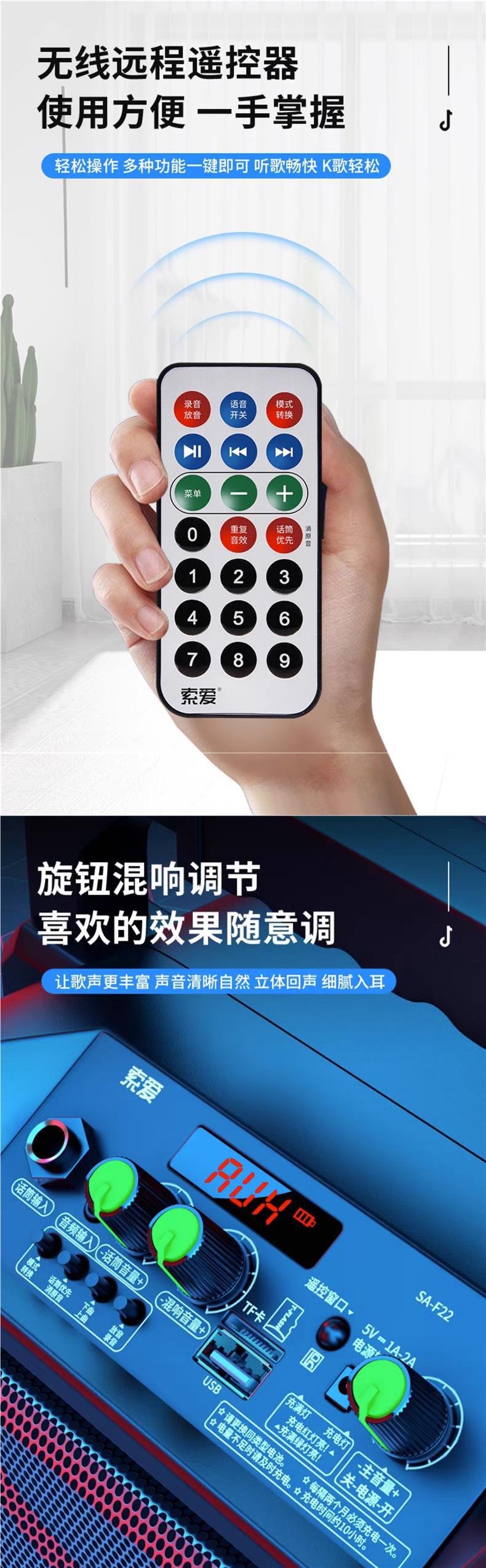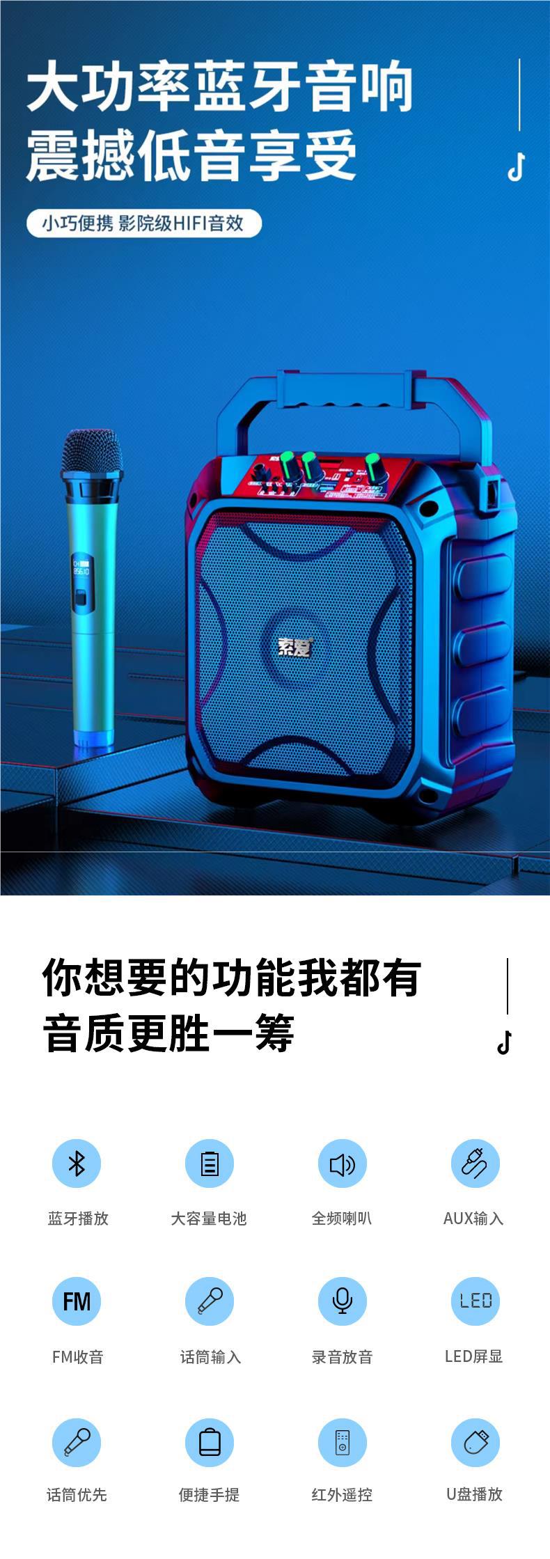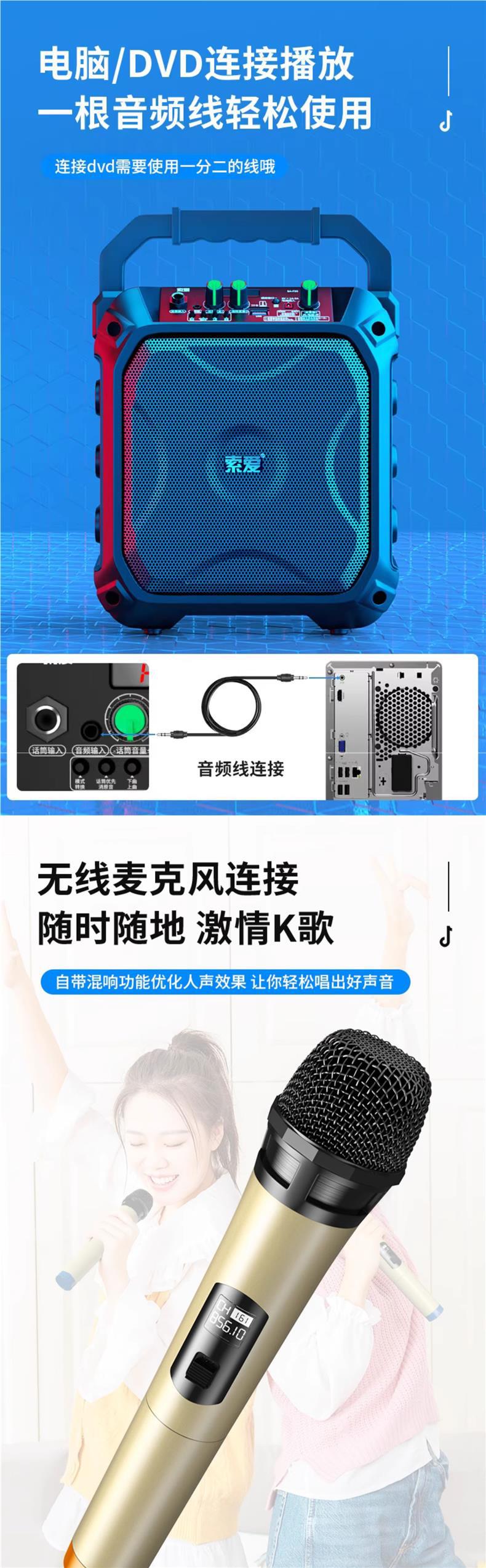 스퀘어 댄스 오디오 야외 스피커 K 노래 휴대용 작은 서브 우퍼 대용량 무선 블루투스 모바일