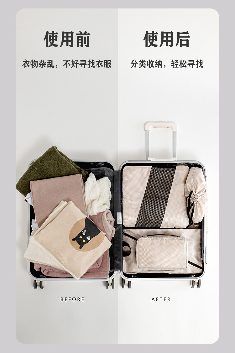 두꺼운 폴리 에스테르 천 여행 용품 세트 신발 커버 마감 6 조각 세트 보관 가방 여행 의류 보관 가방