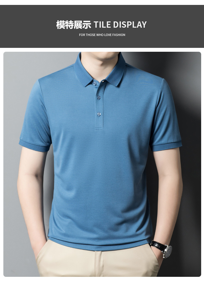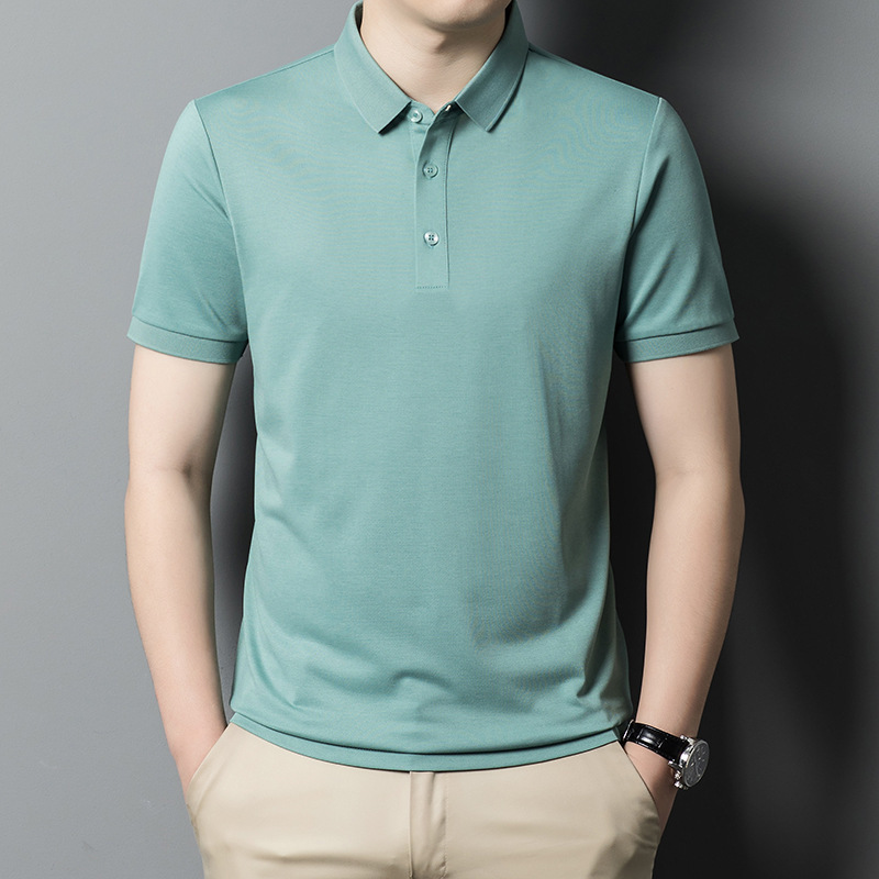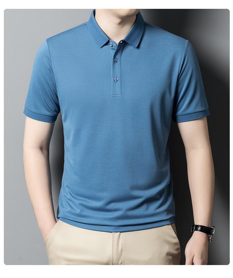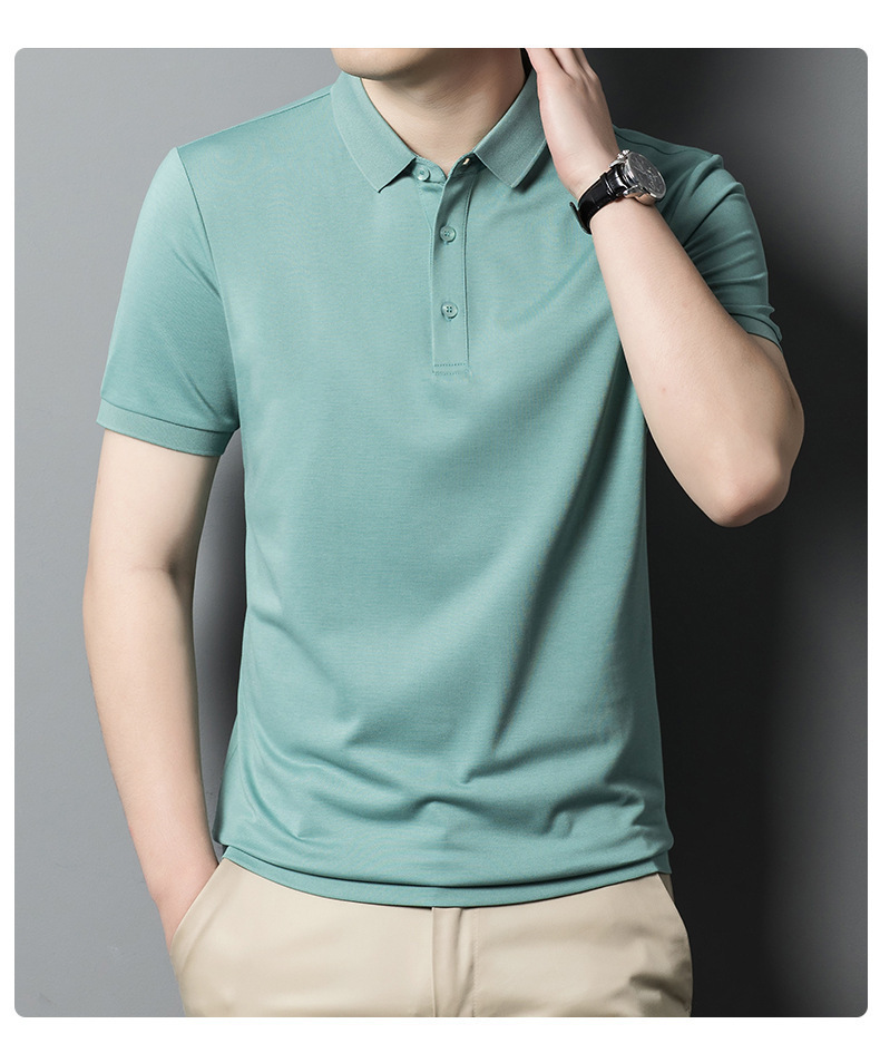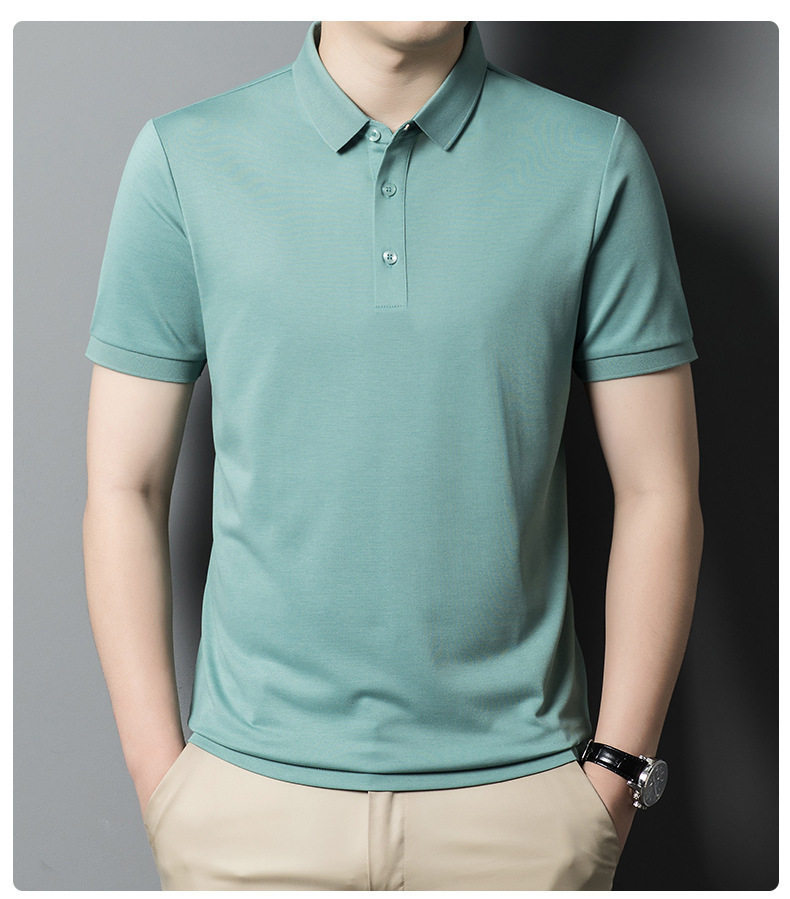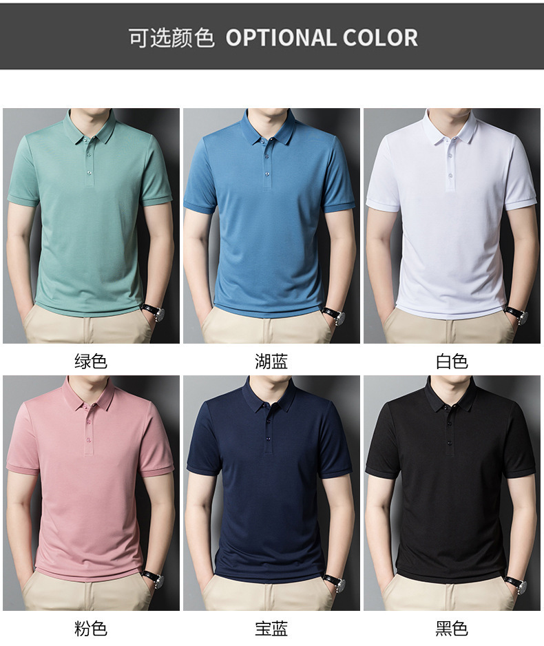 男士Polo衫短袖桑蚕丝2024夏季新款纯色方领上班商务休闲男款上衣