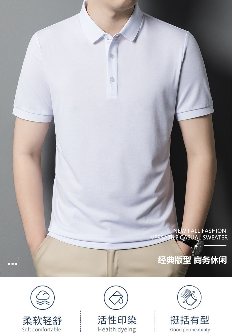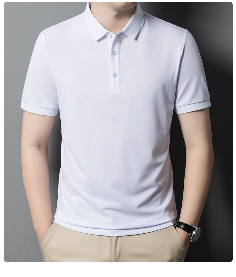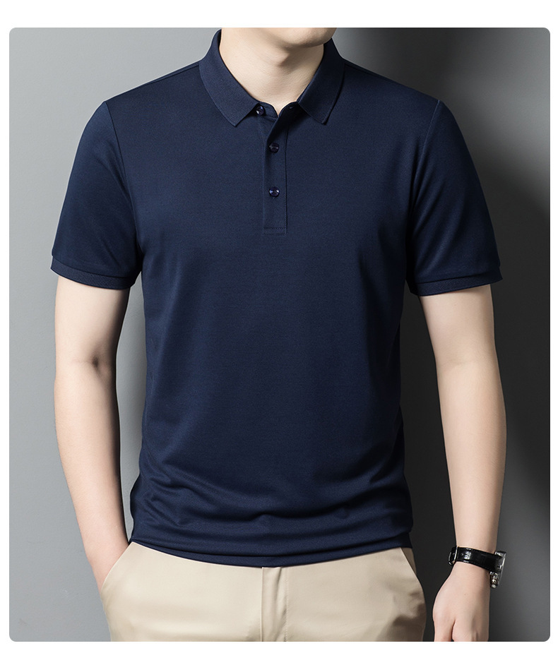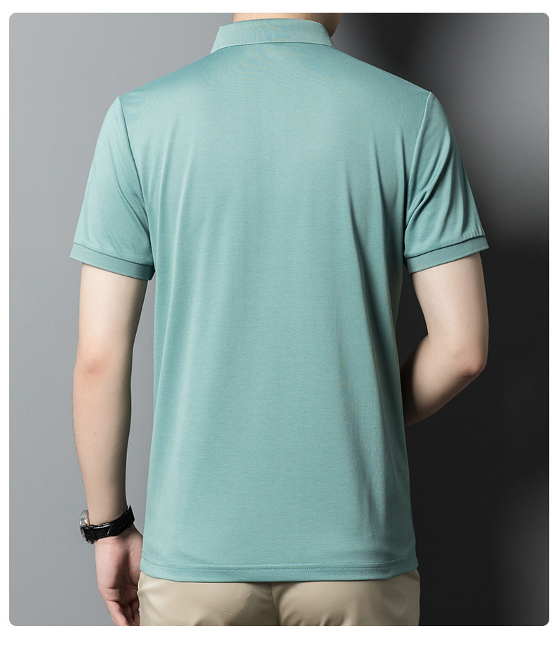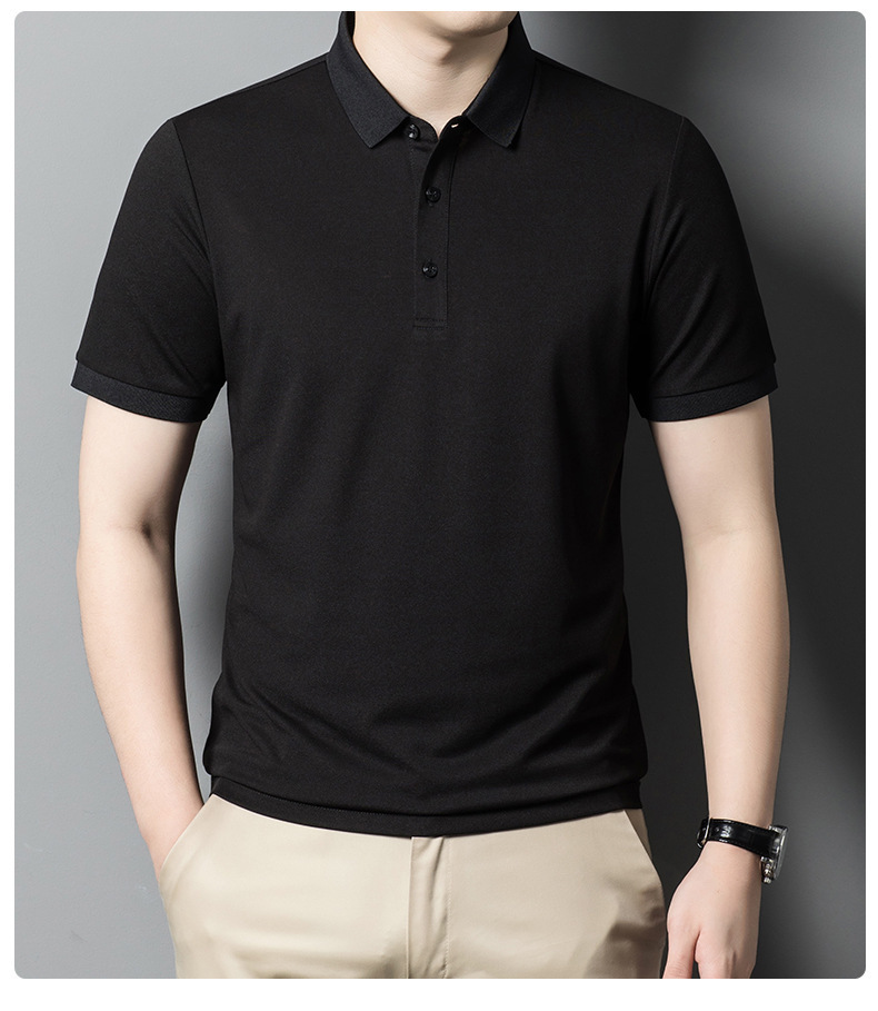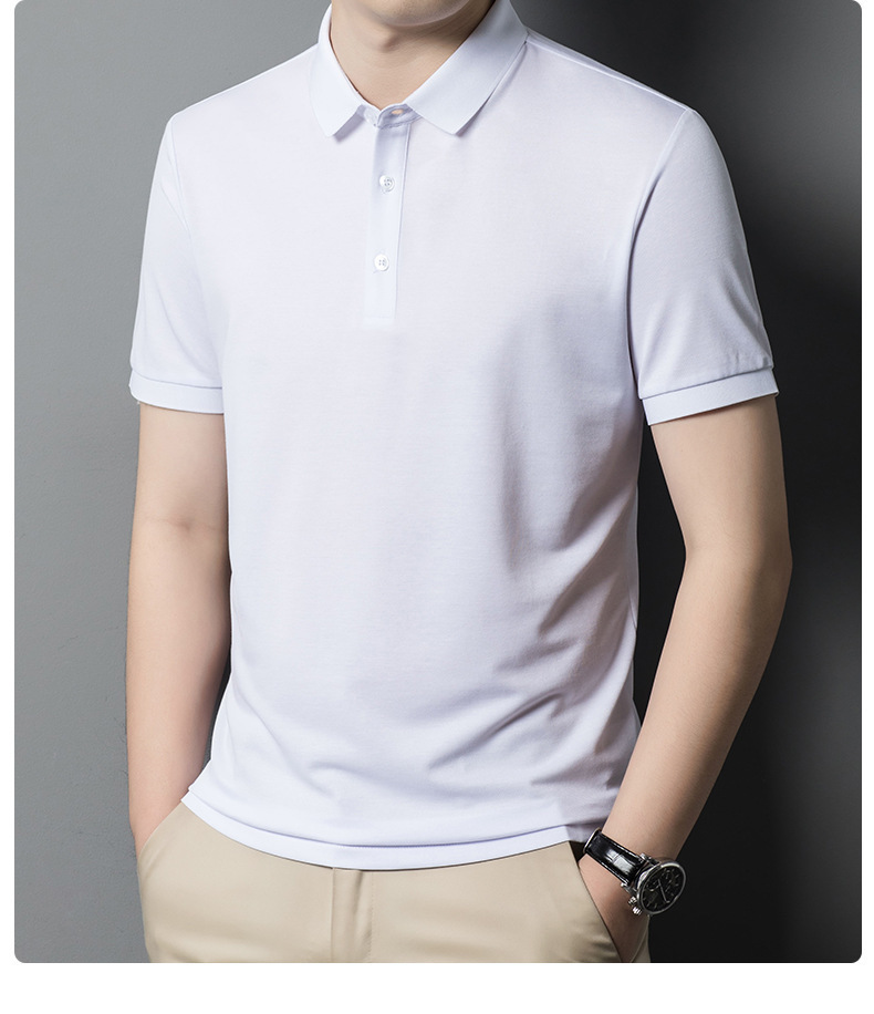 男士Polo衫短袖桑蚕丝2024夏季新款纯色方领上班商务休闲男款上衣