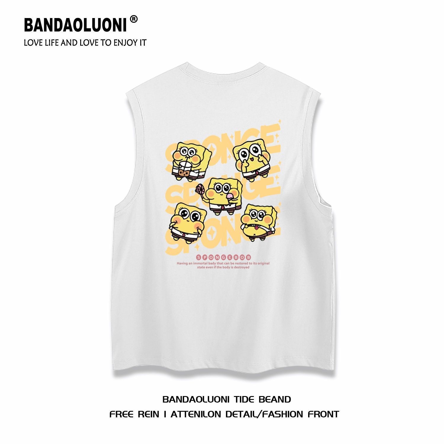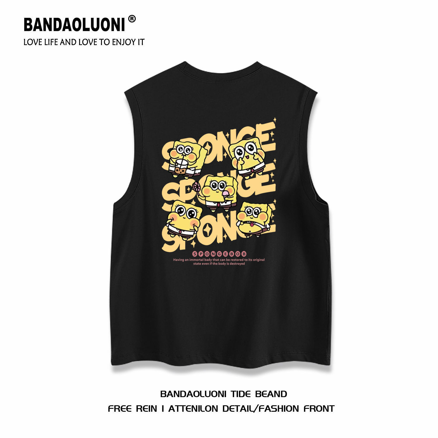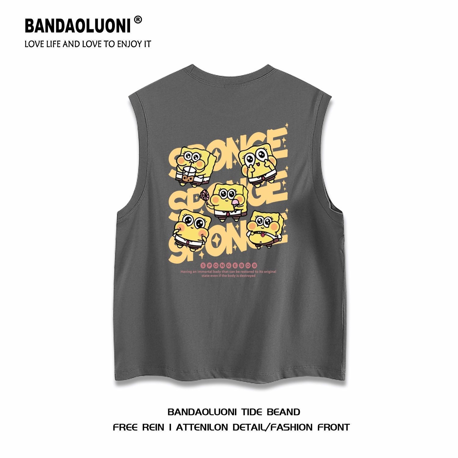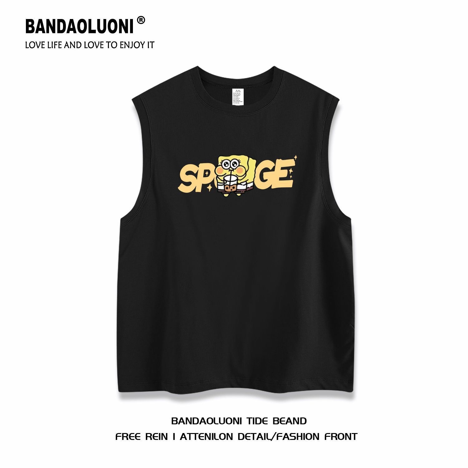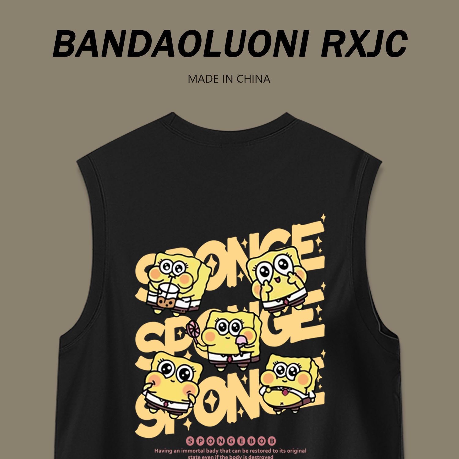 어린이 새 여름 만화 스폰지 밥 광장 편지 민소매 티셔츠 스타일 올매치 인쇄 조끼 유행 티셔츠 소년 소녀스토어 가기