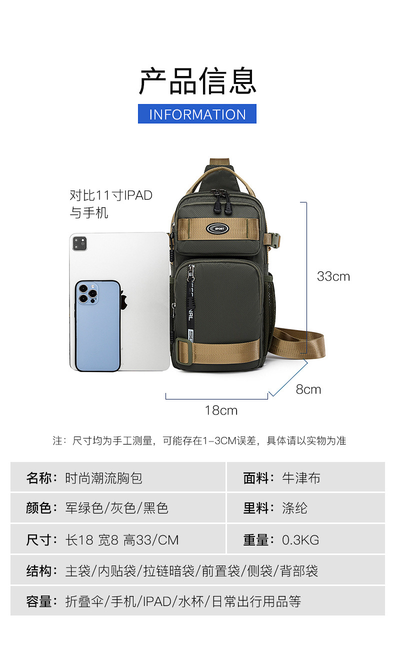 국경 간 남자 가방 대용량 배낭 옥스포드 천 가슴 가방 남자 크로스 바디 가방 어깨 가방 야외 다기능 발수스토어 가기