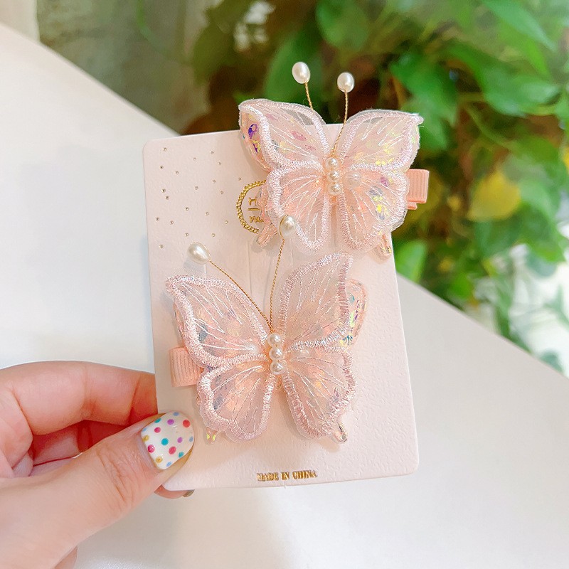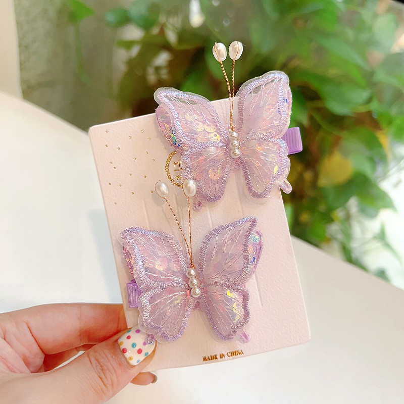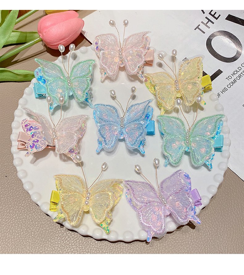 구슬 나비 헤어핀 틈새 헤어 액세서리 헤어핀 디자인 화이트 헤드웨어 뱅 자수 패션 깨진 헤어핀