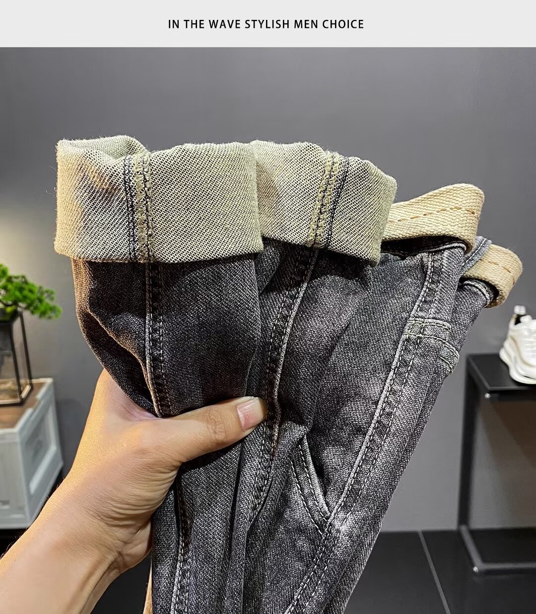 청바지 남자 2024 년 여름 새로운 유행 브랜드 연기 그레이 올 매치 경사 캐주얼 슬림 핏 크롭 팬츠스토어 가기
