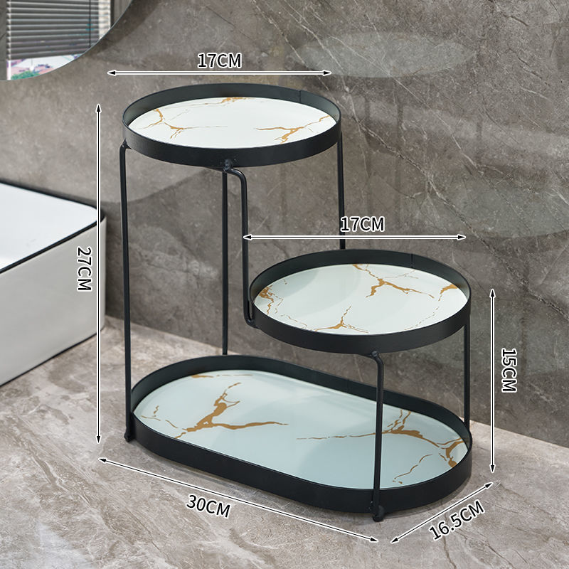 • 블랙 3 층 타원형 스몰 사이즈 유리 거울 (내부 상자 포함)