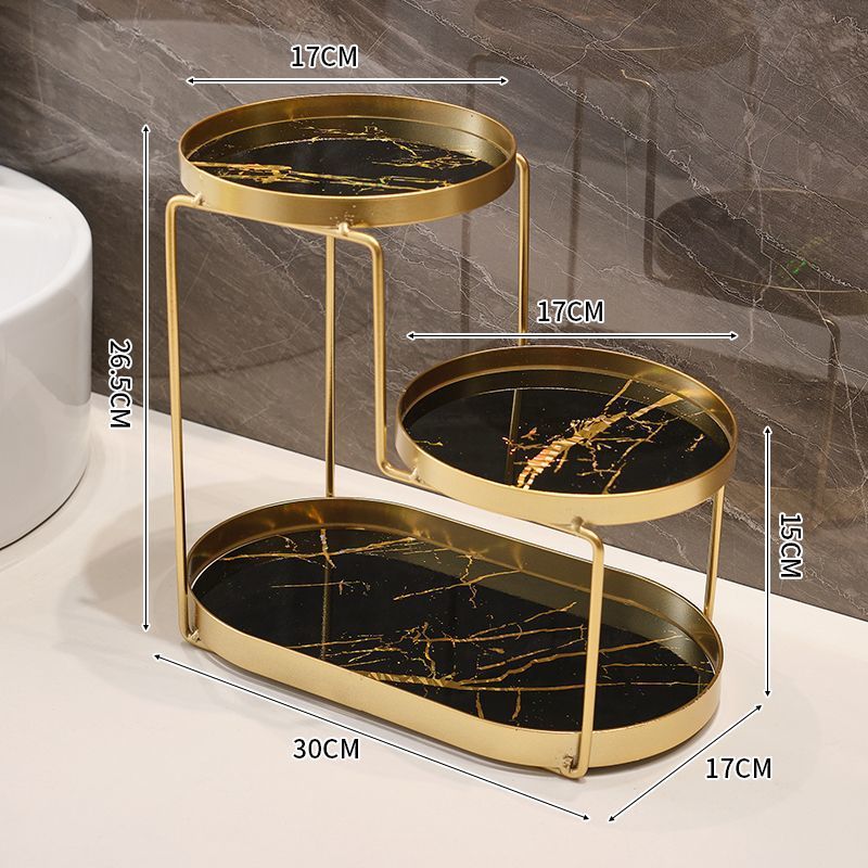 • 금 3 층 타원형 스몰 사이즈 유리 블랙 골드 (내부 상자 포함)