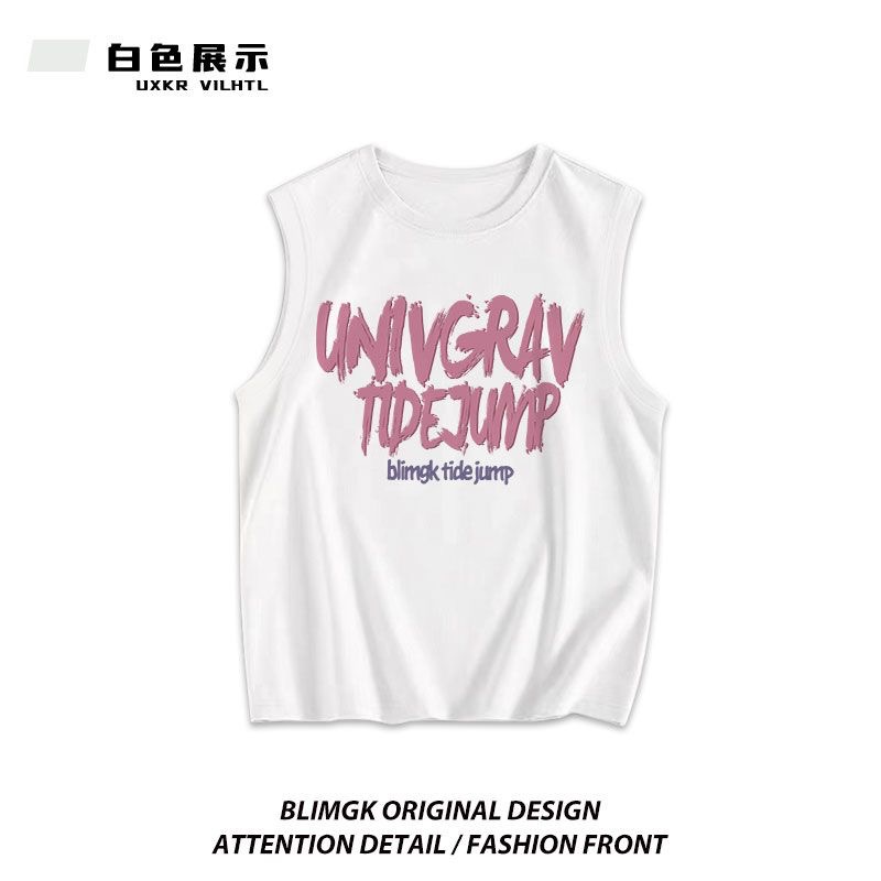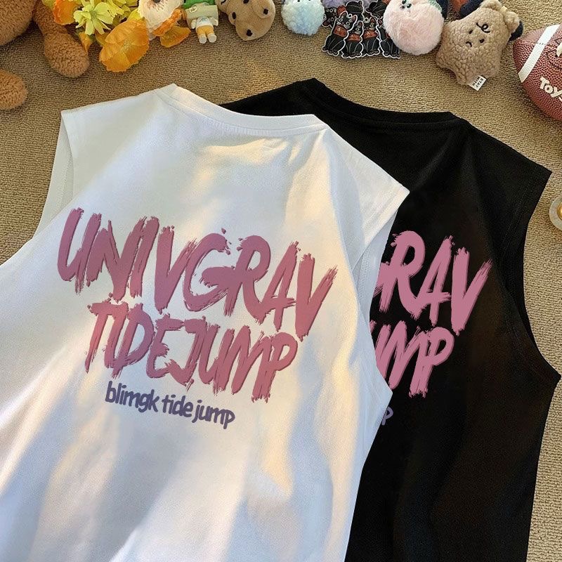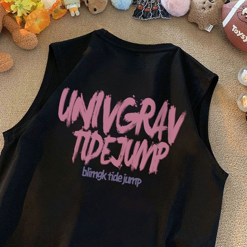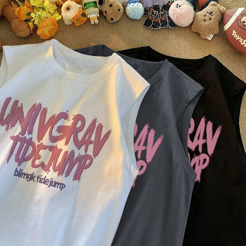 어린이 민소매 티셔츠 소년 소녀 최고 조끼 2024 여름 어린이 편지 인쇄 서양식 올 매치 티셔츠스토어 가기