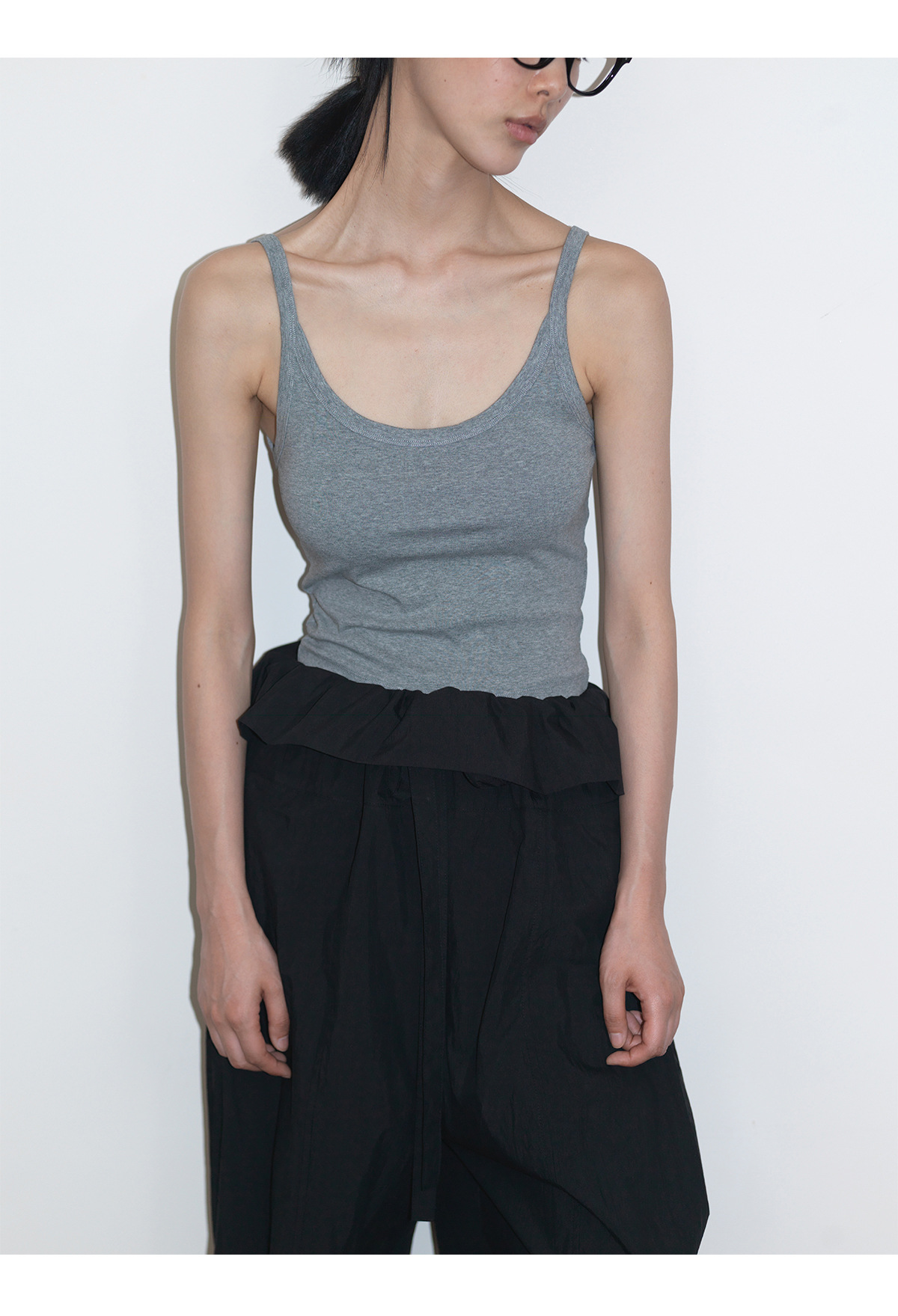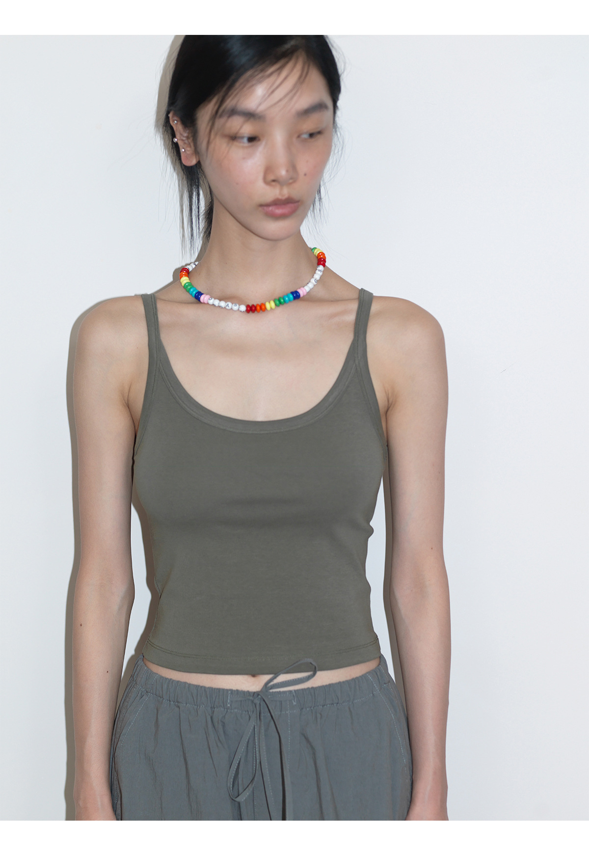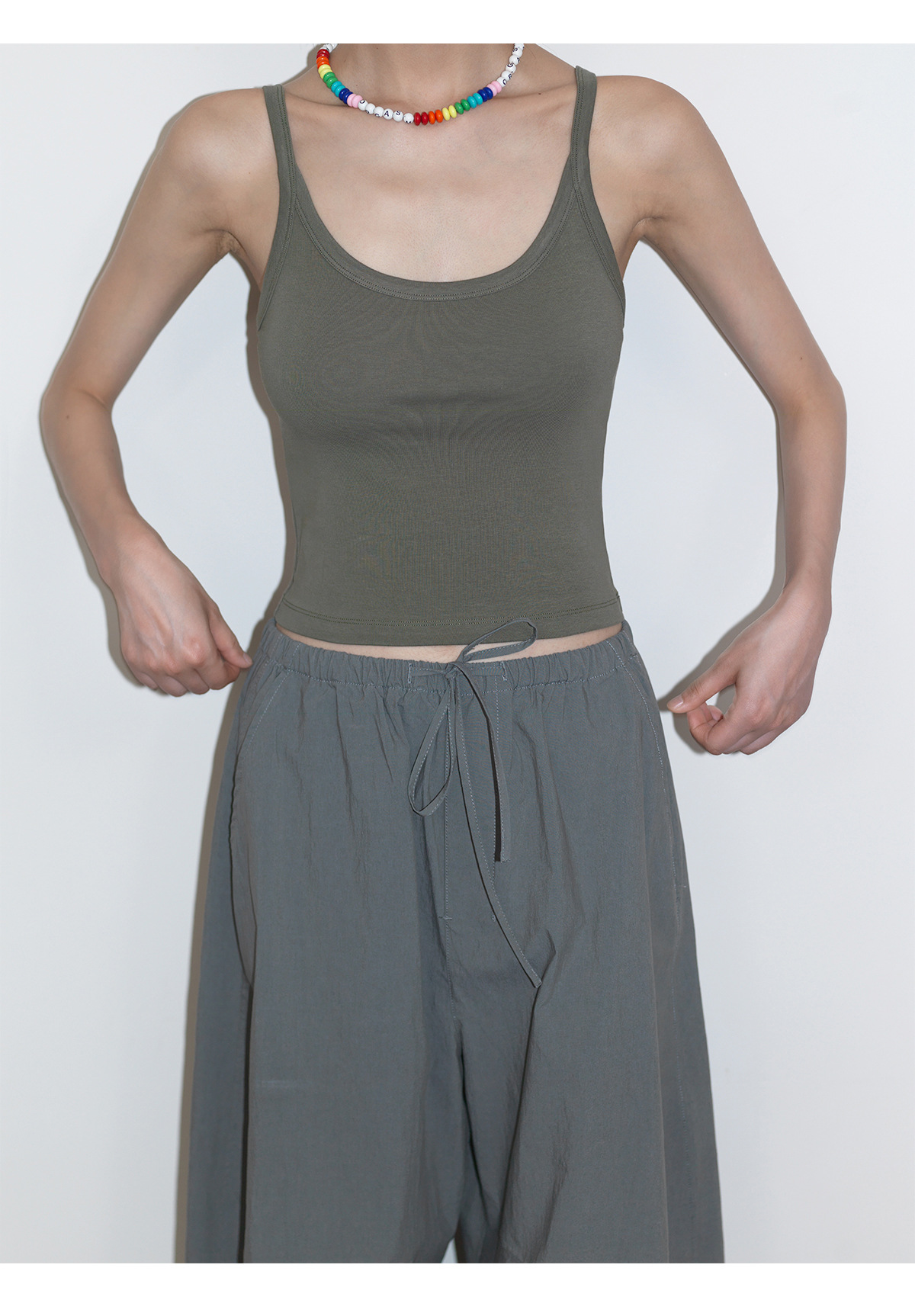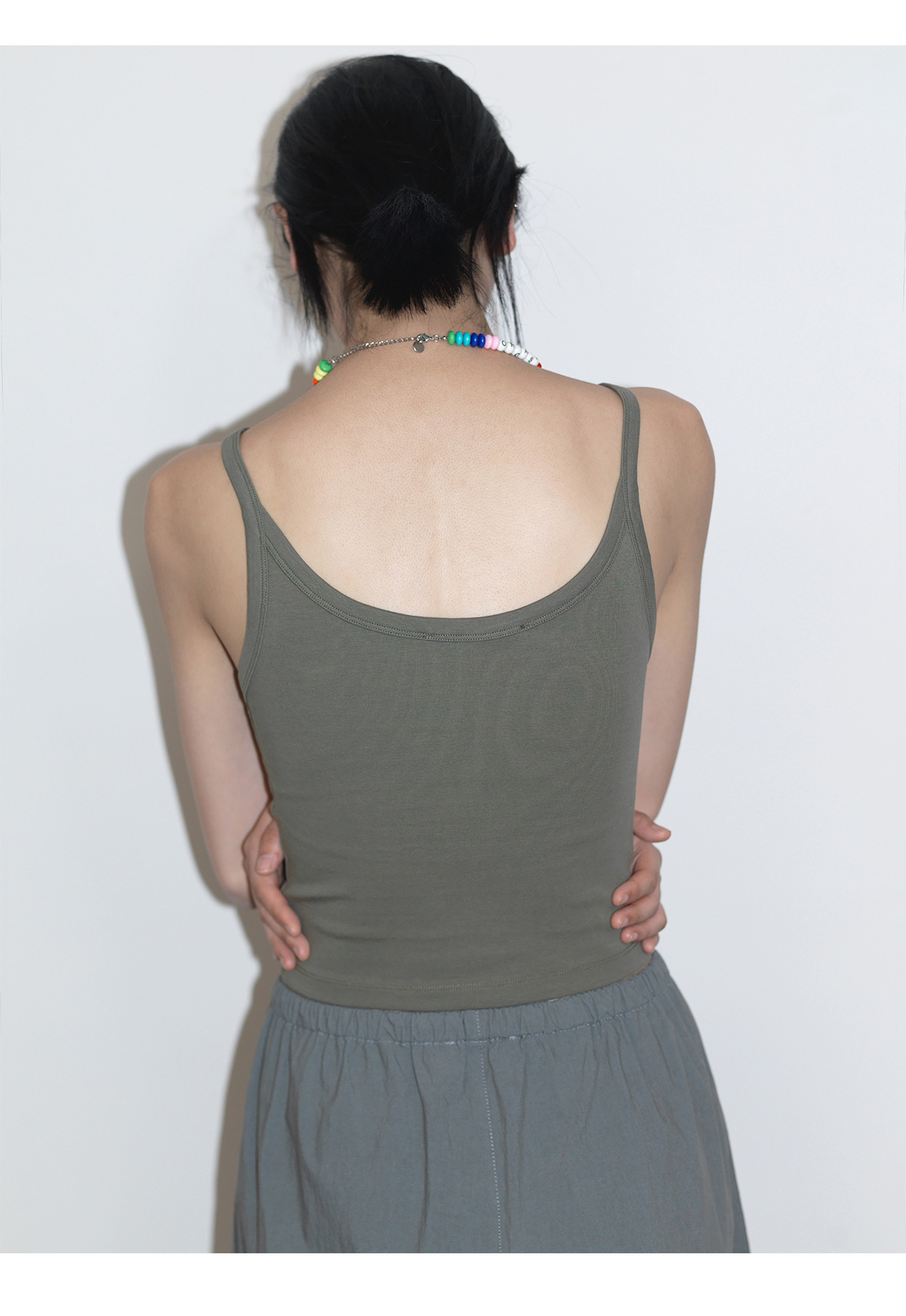 [언제 알아] 새로운 면화 U-칼라 커버 액세서리 우유 마이크로 탄성 니트 슬림 초단 바닥 서스펜더 탑 여성 V6726