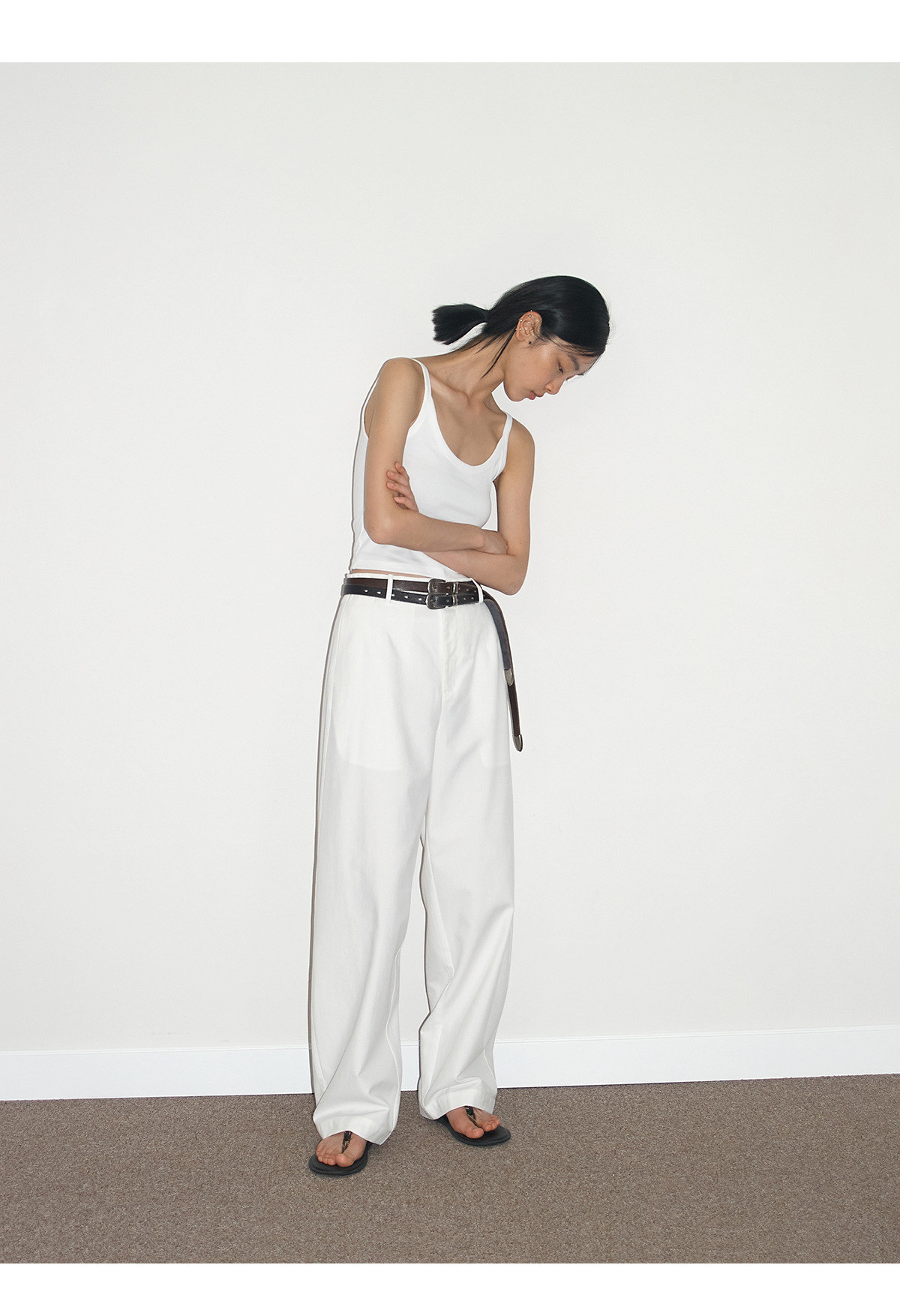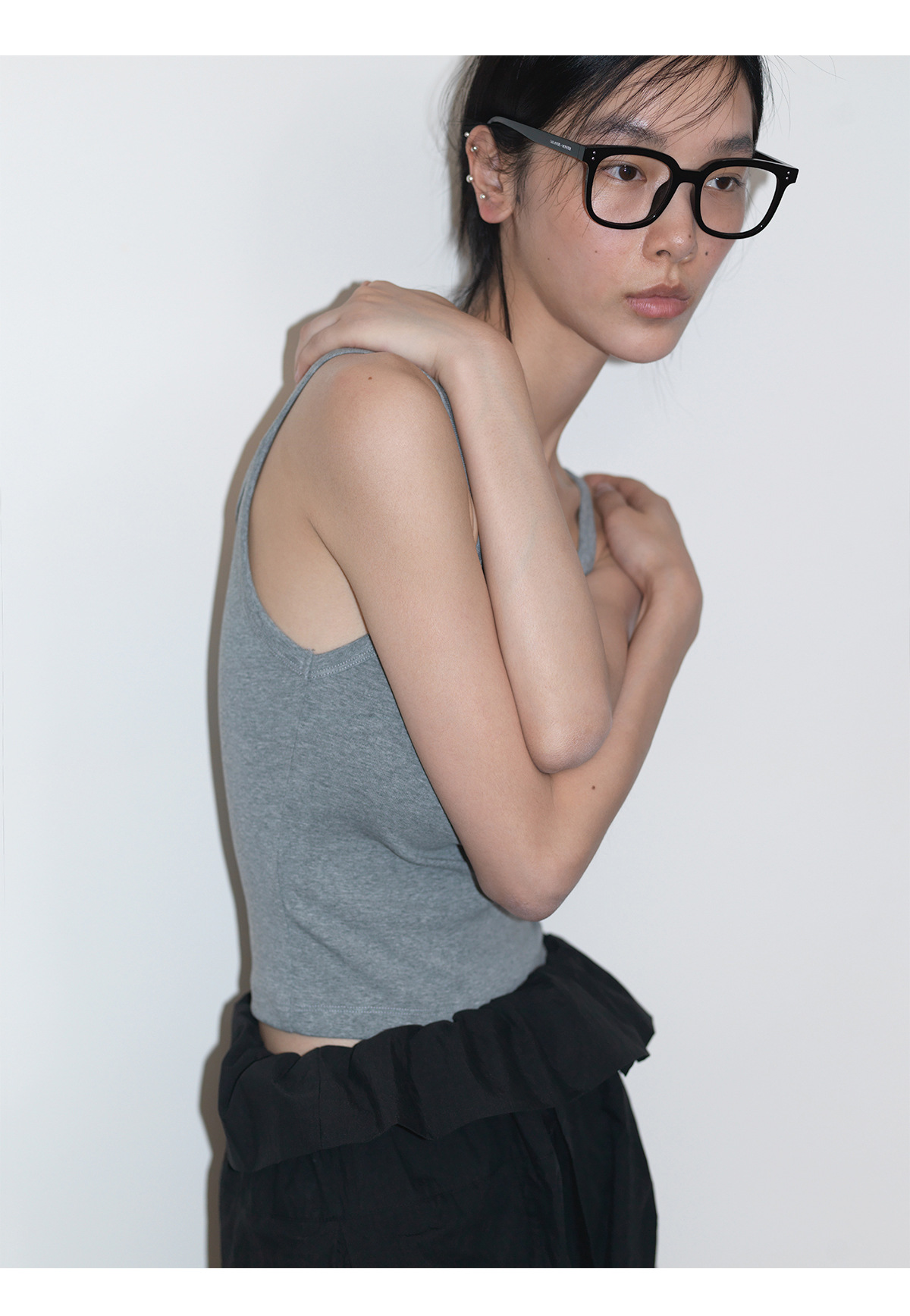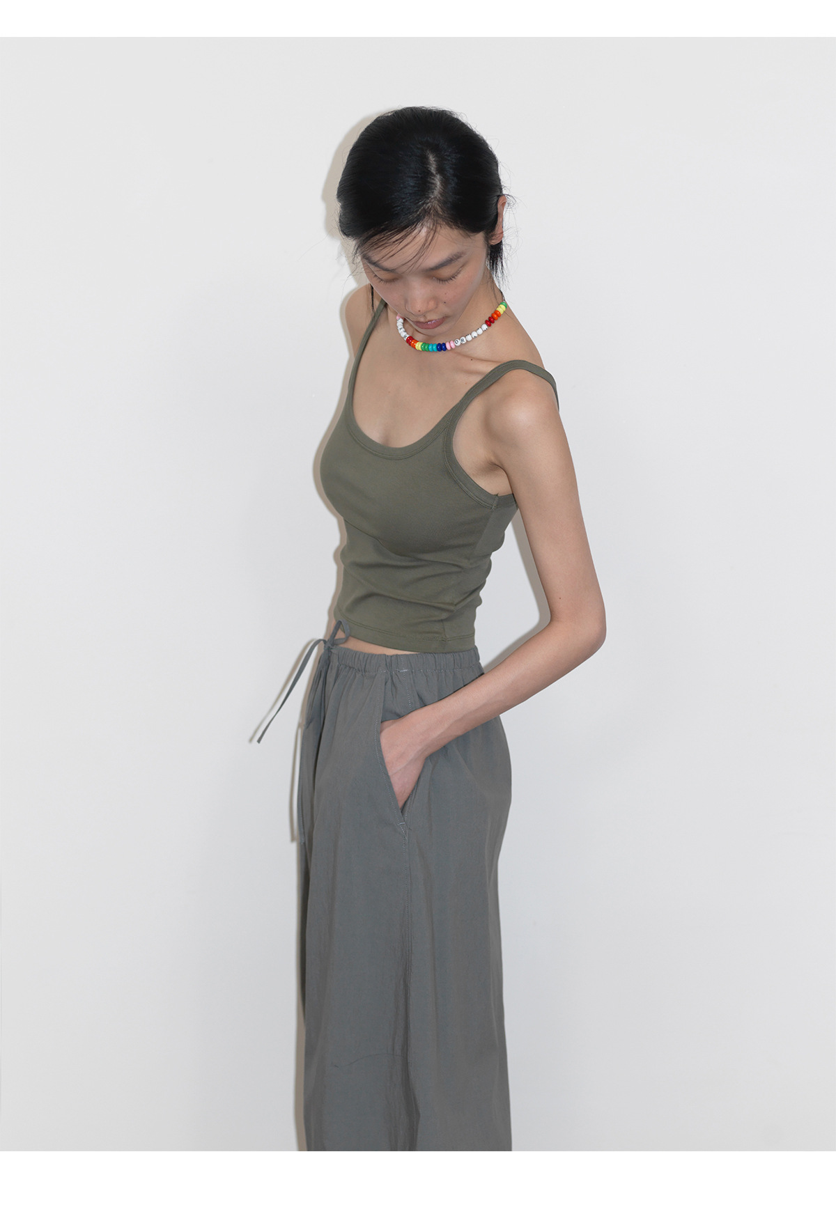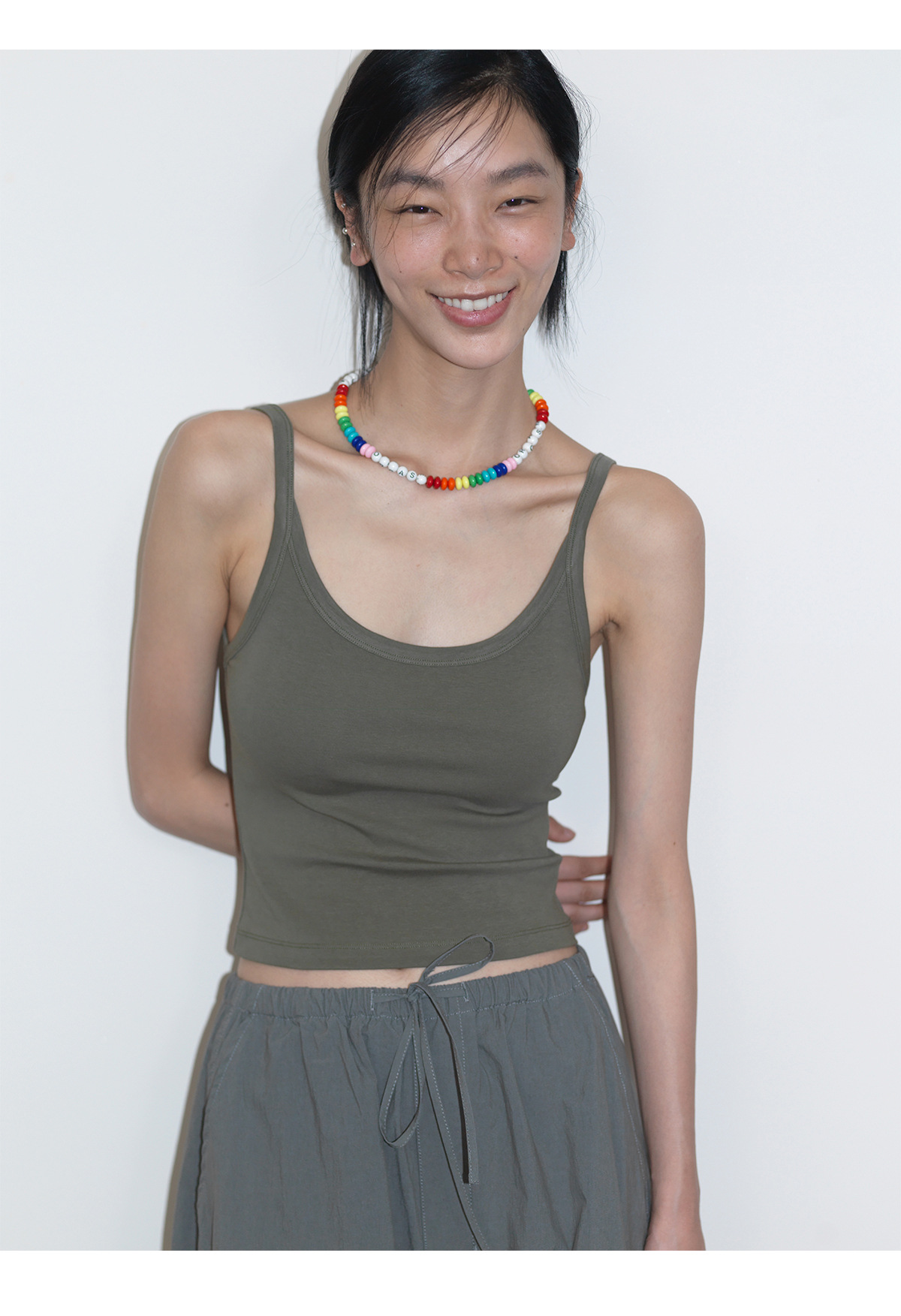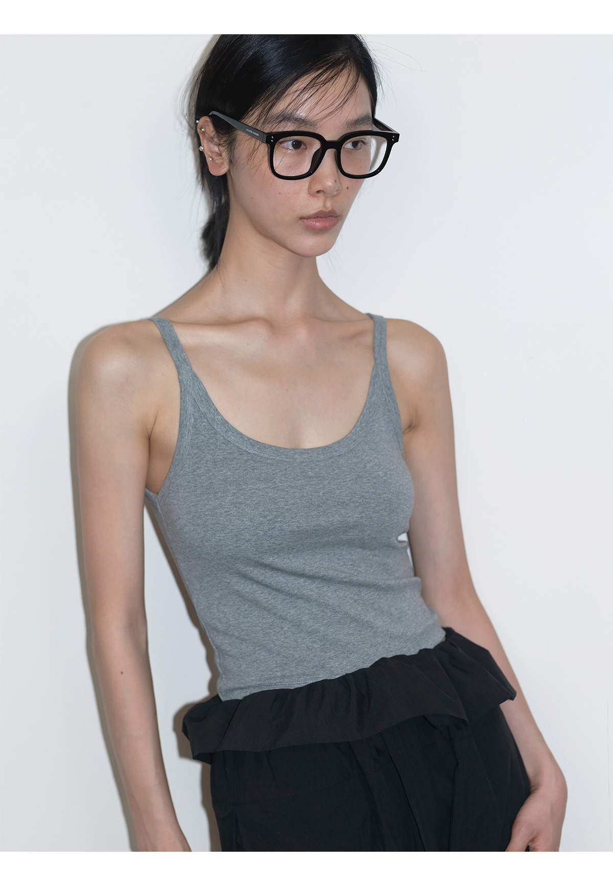 [언제 알아] 새로운 면화 U-칼라 커버 액세서리 우유 마이크로 탄성 니트 슬림 초단 바닥 서스펜더 탑 여성 V6726