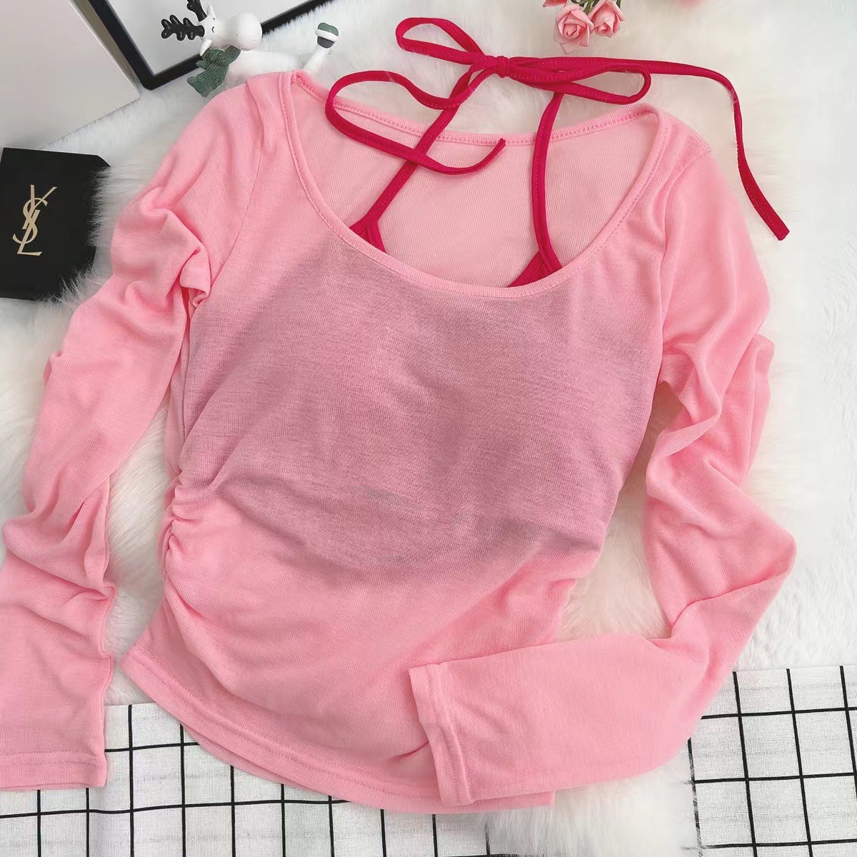 • 핑크 블라우스 로즈 레드 멜빵 [2 개]