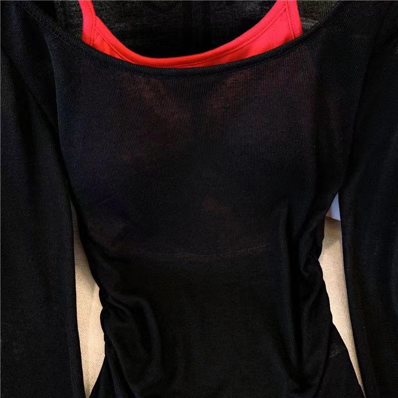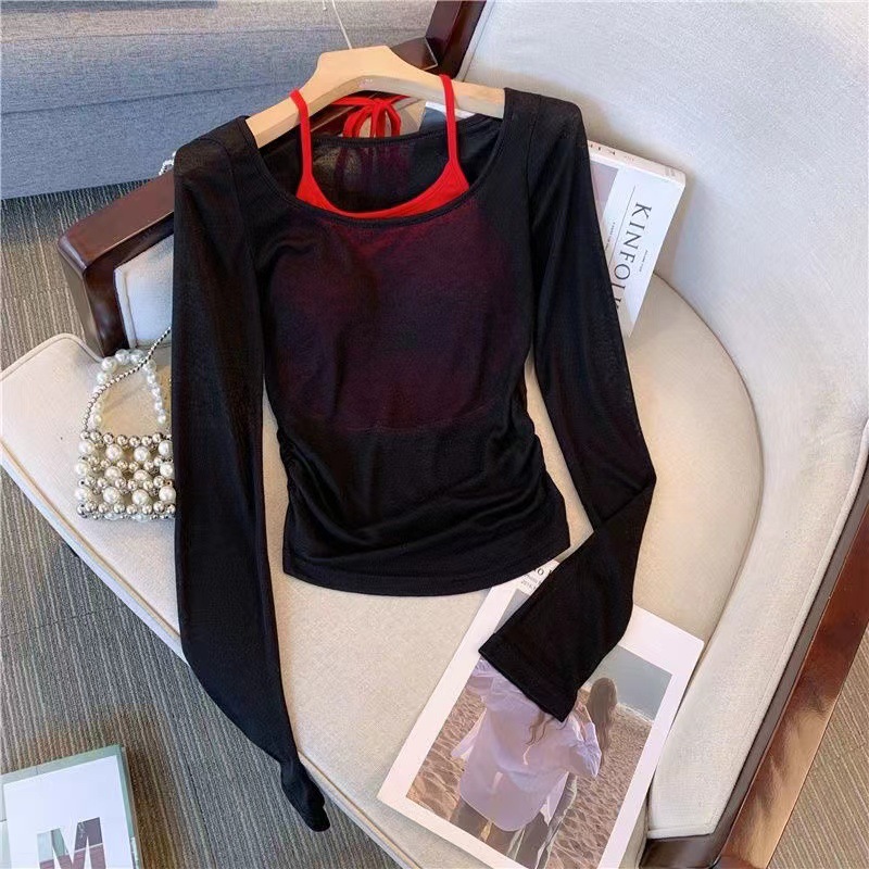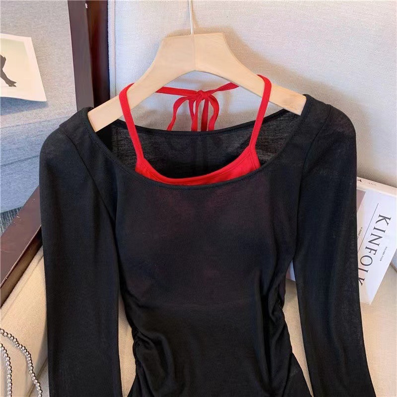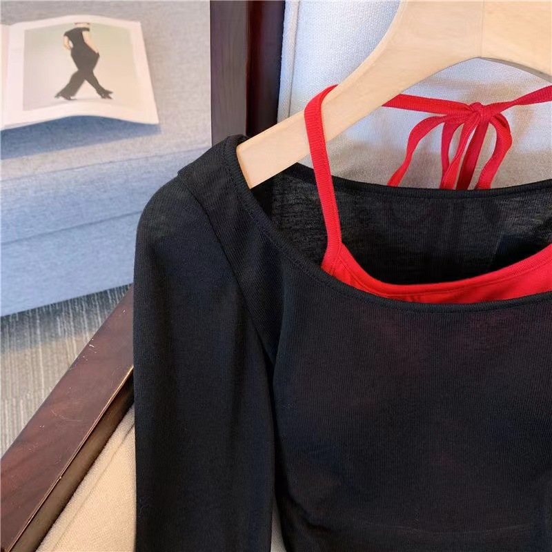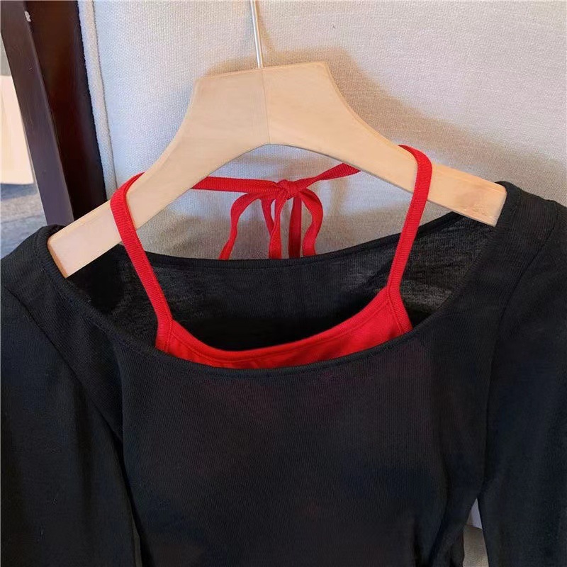 • 블랙 블라우스 레드 멜빵 [2 개]