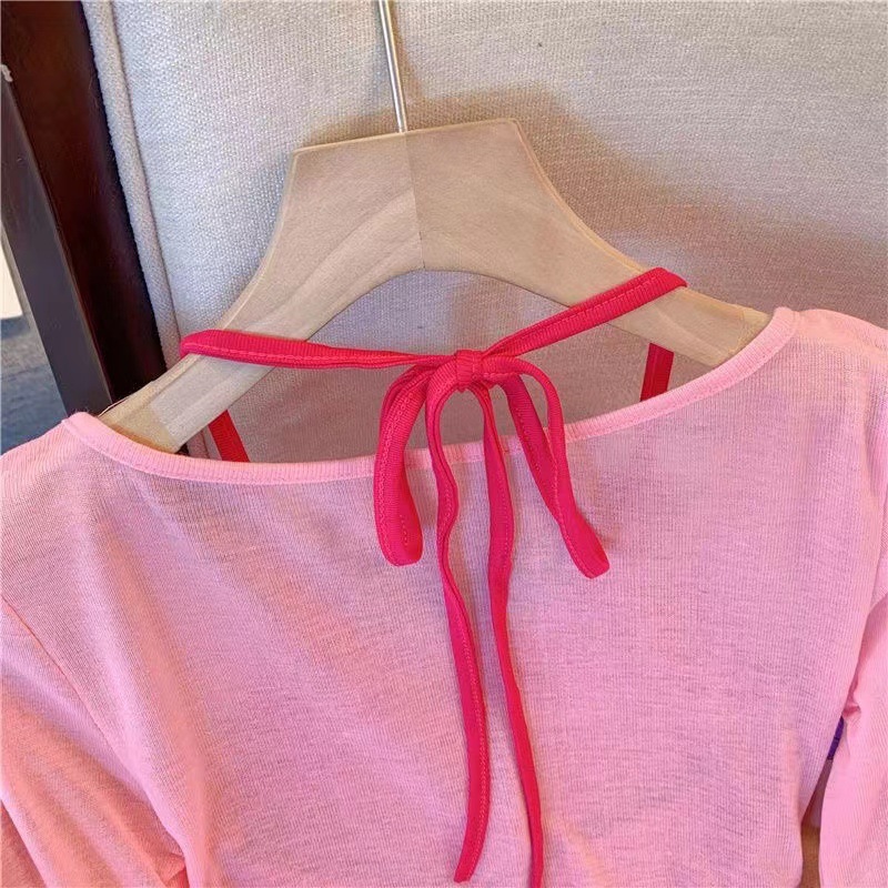 핑크 도파민 자외선 차단 홀터넥 니트 여성 투피스 세트 디자인 감각적인 인기 얇은 긴팔 상의 여름