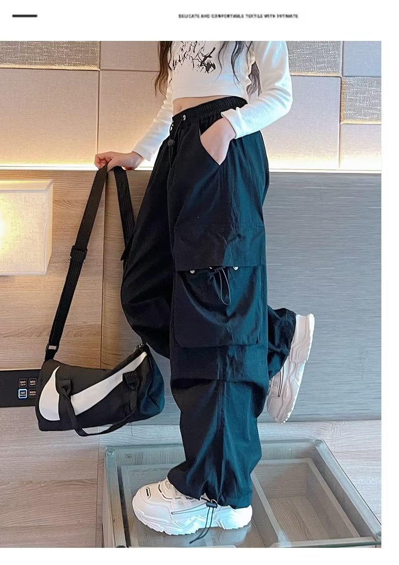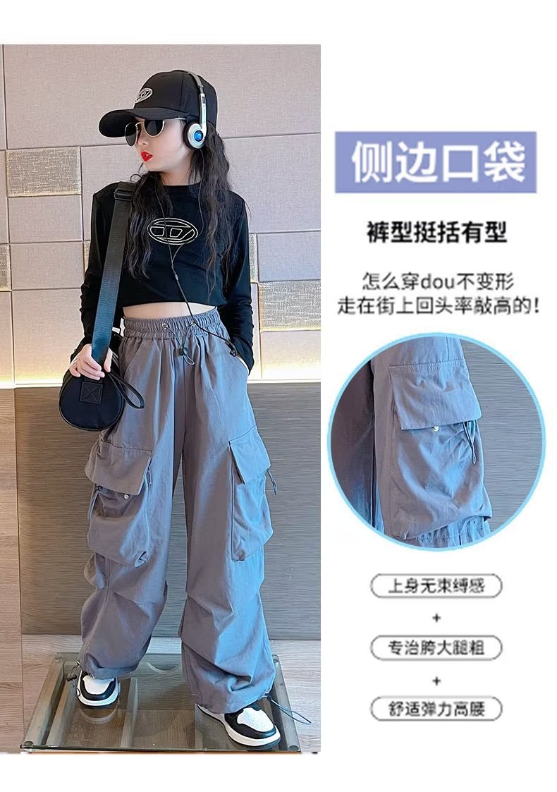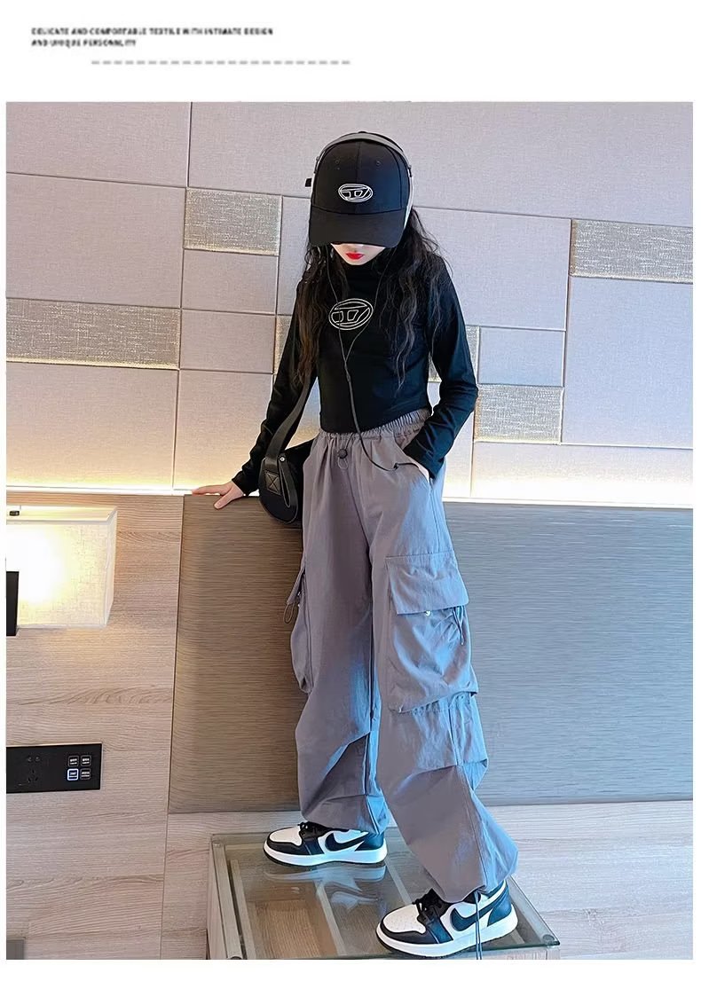 소녀 바지 봄과 가을 소녀 유행 서양식 작업복 바지 가을 인터넷 연예인 튀김 거리 가을 어린이 스포츠 바지 유행