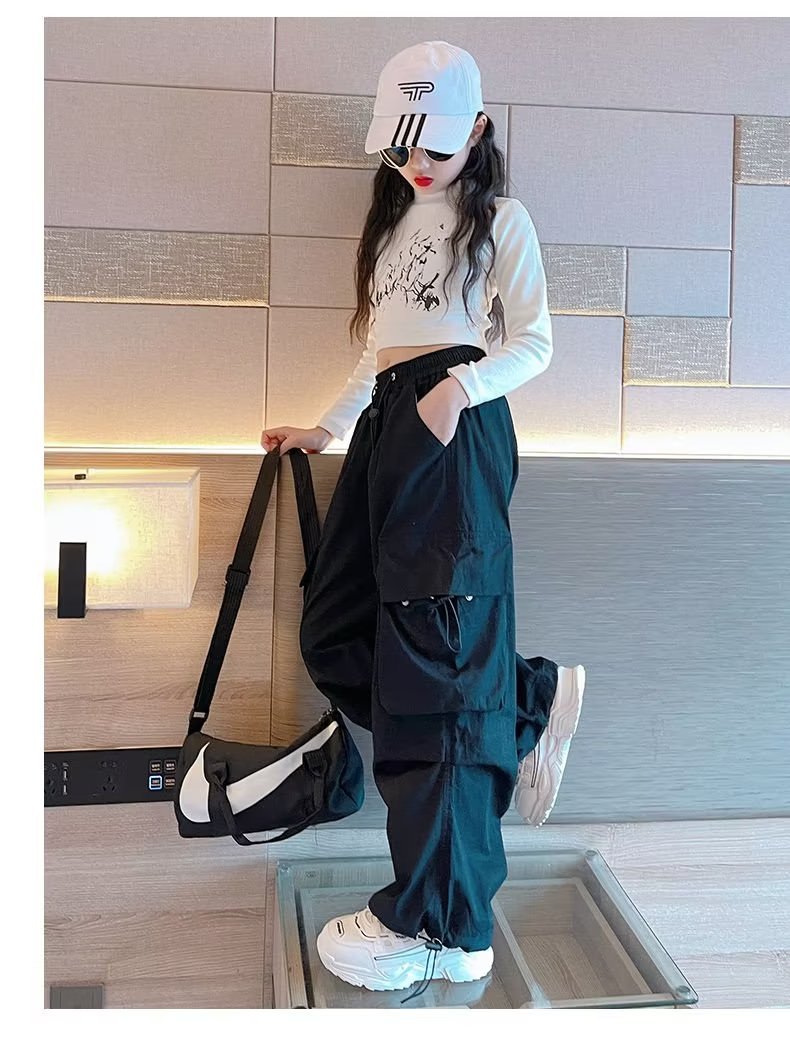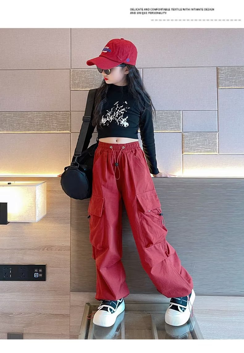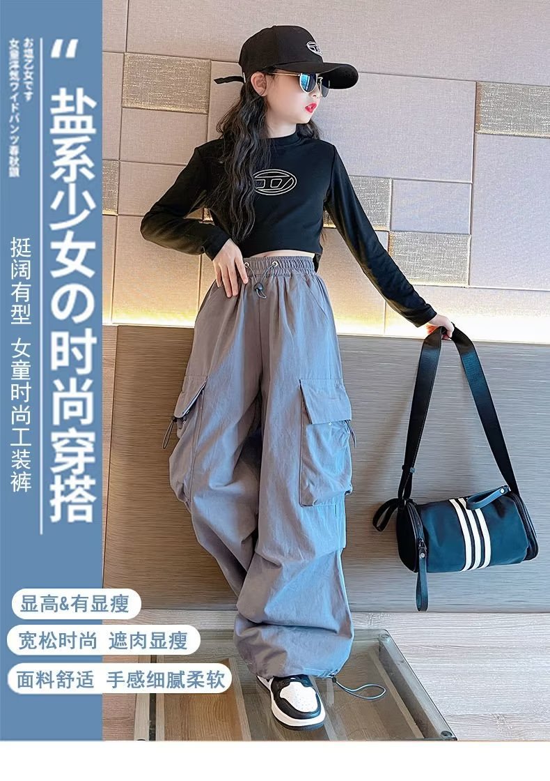 소녀 바지 봄과 가을 소녀 유행 서양식 작업복 바지 가을 인터넷 연예인 튀김 거리 가을 어린이 스포츠 바지 유행스토어 가기