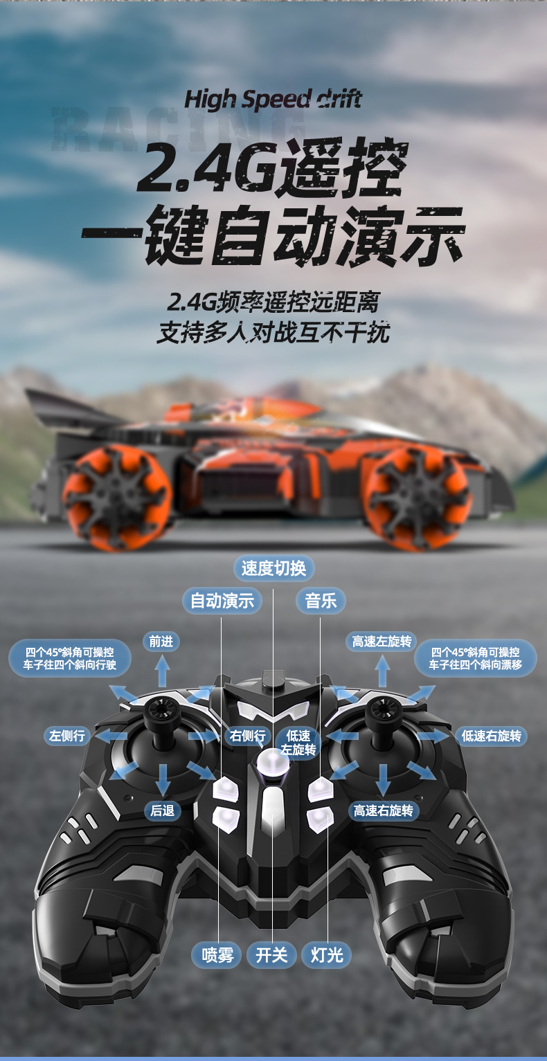 국경 간 원격 제어 장난감 자동차 범용 원격 레버 360 도 만능 가변 속도 로켓 스프레이 스턴트 경쟁 F 경주스토어 가기