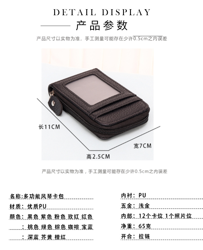 국경 간 새로운 아레나 카드 케이스 PU 휴대용 여성 짧은 은행 카드 케이스 카드 홀더 지퍼 수직 클러치