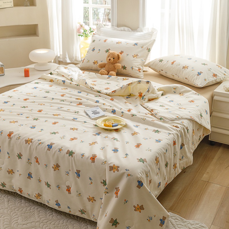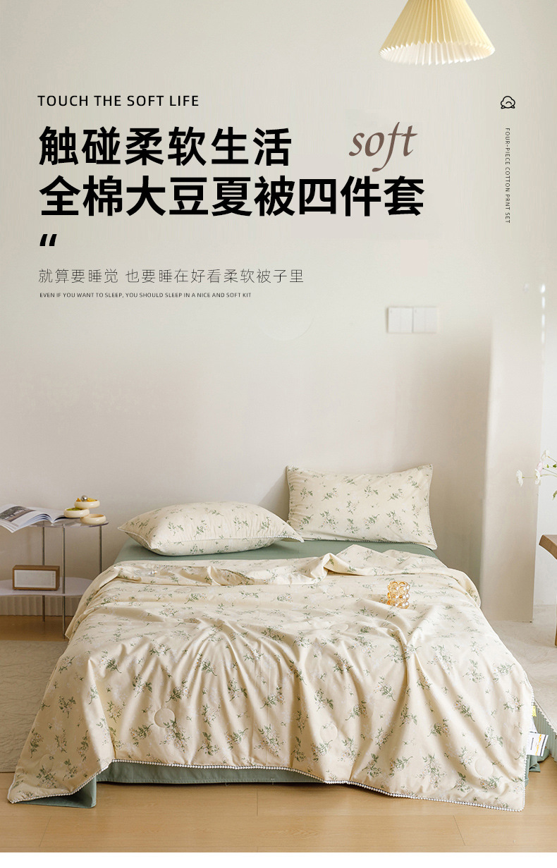 클래스 A 엄마와 유아용 콩 섬유 여름 시원한 이불 4 조각 세트 여름 얇은 여름 이불 한국 인쇄 순면 공기 양조 이불