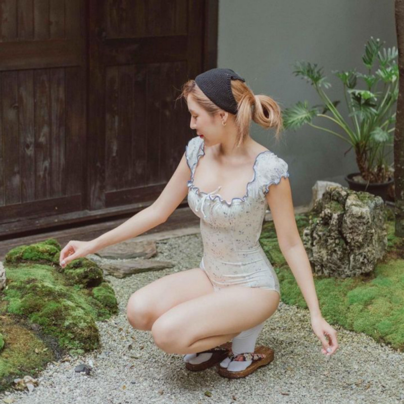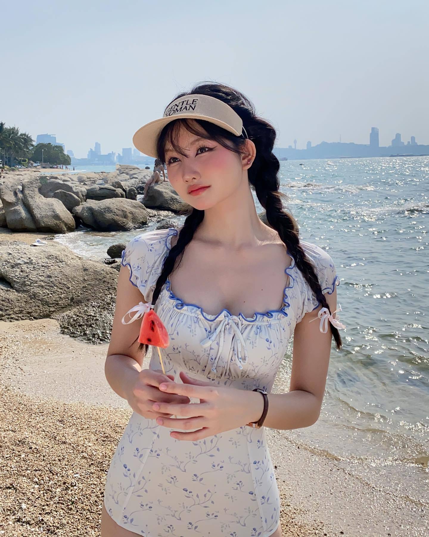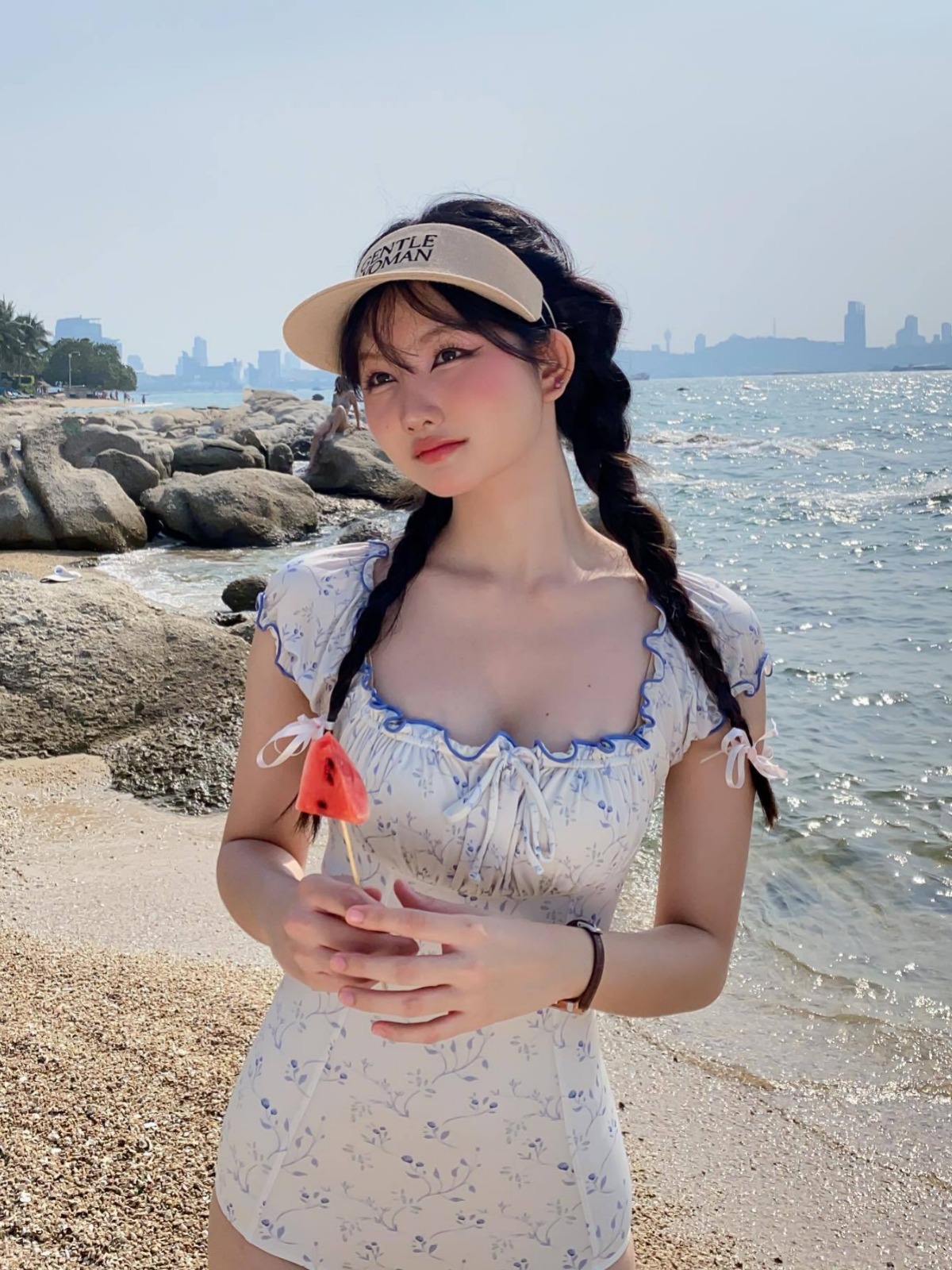 소스 공장 흰색 꽃 반팔 보수적 인 타이트 슬림 삼각형 온천 휴가 순수 백리스 수영복스토어 가기