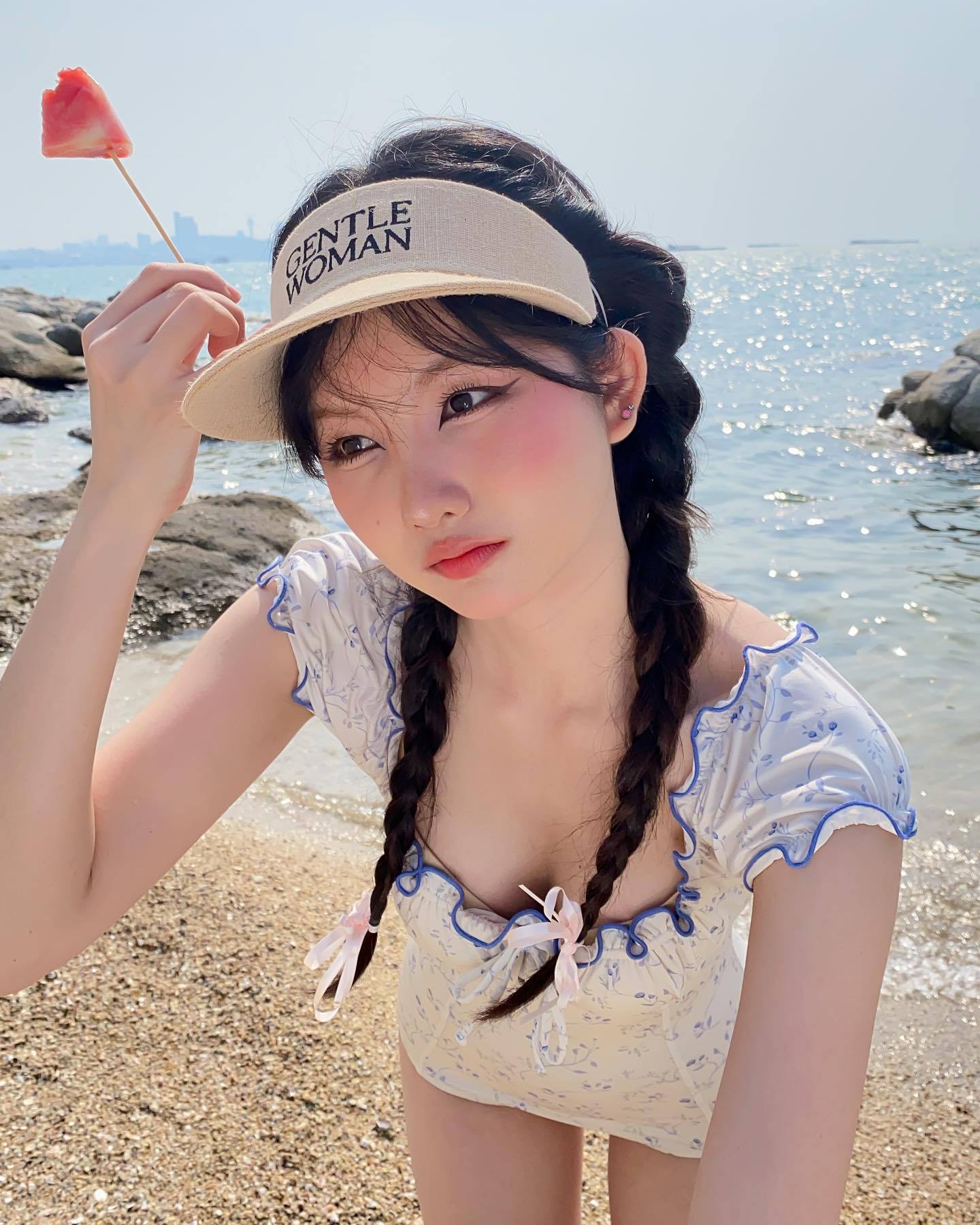 소스 공장 흰색 꽃 반팔 보수적 인 타이트 슬림 삼각형 온천 휴가 순수 백리스 수영복