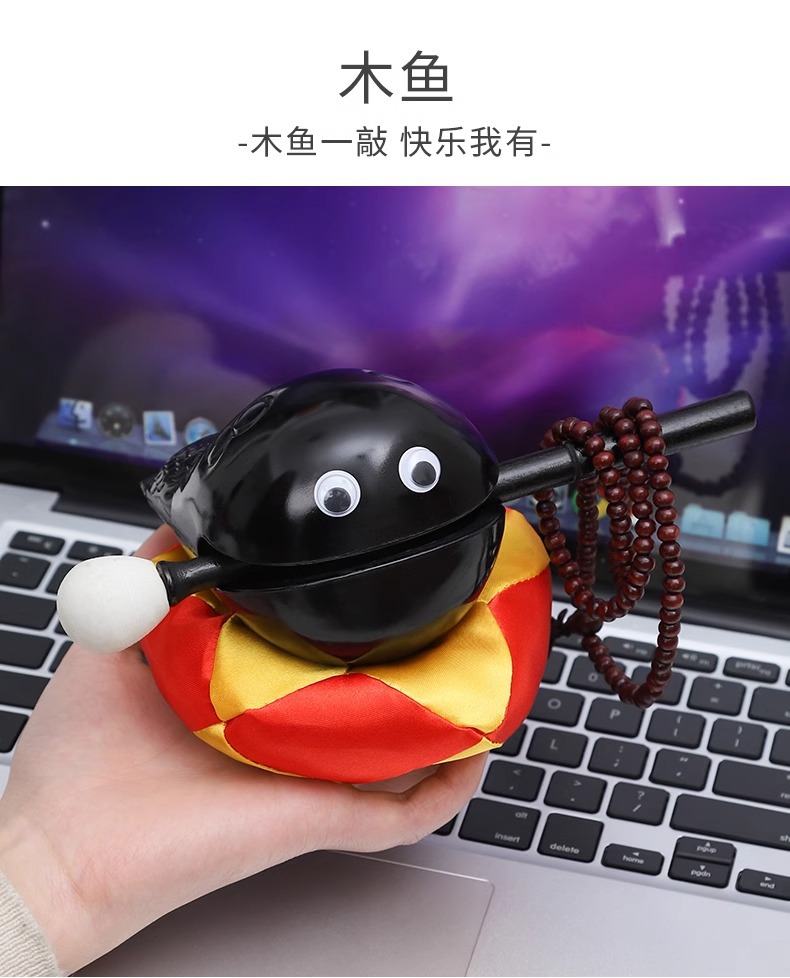 작은 나무 물고기 노크 귀여운 휴대용 감압 사무실 명상 타악기 장식품 나무 조각 펜던트 장난감 선물