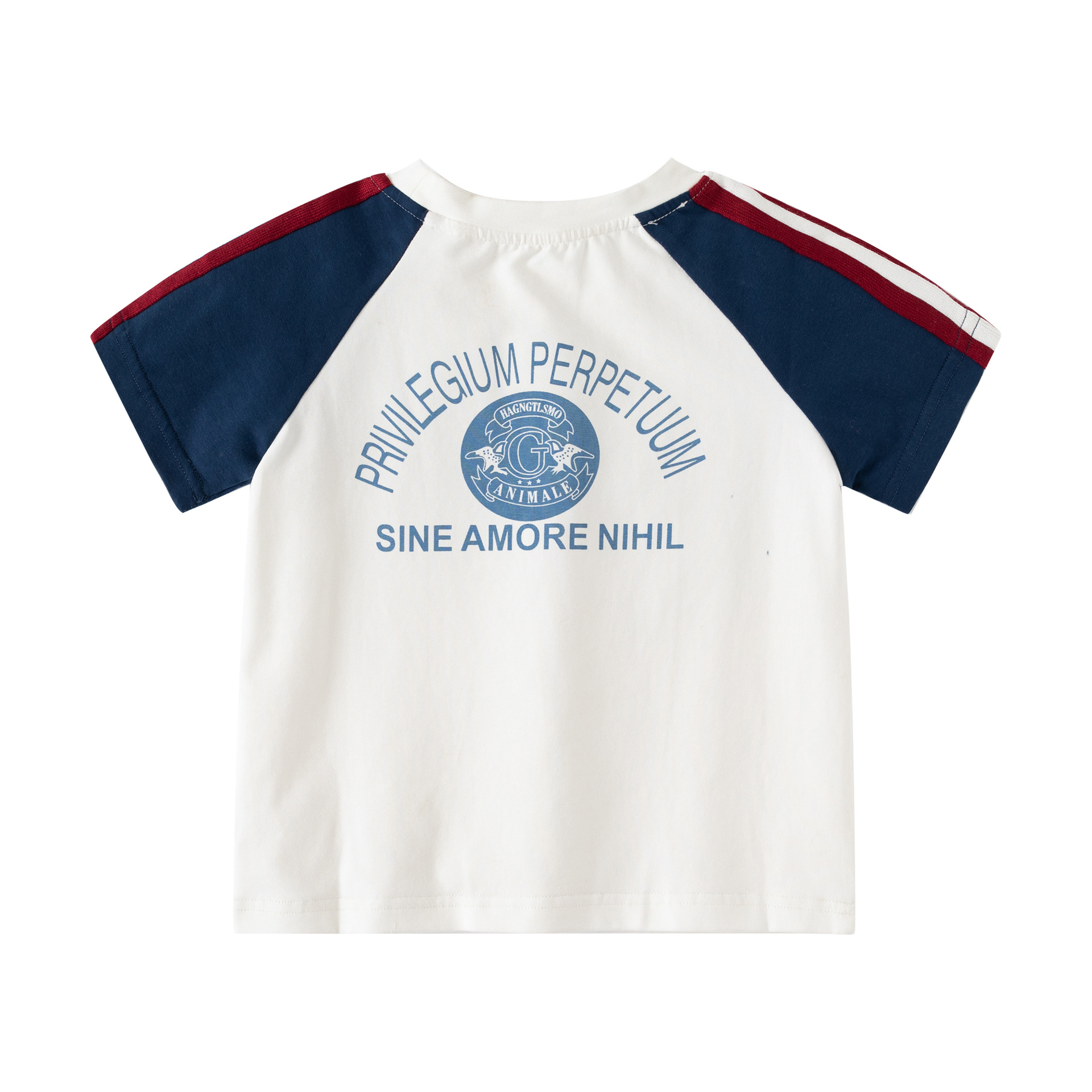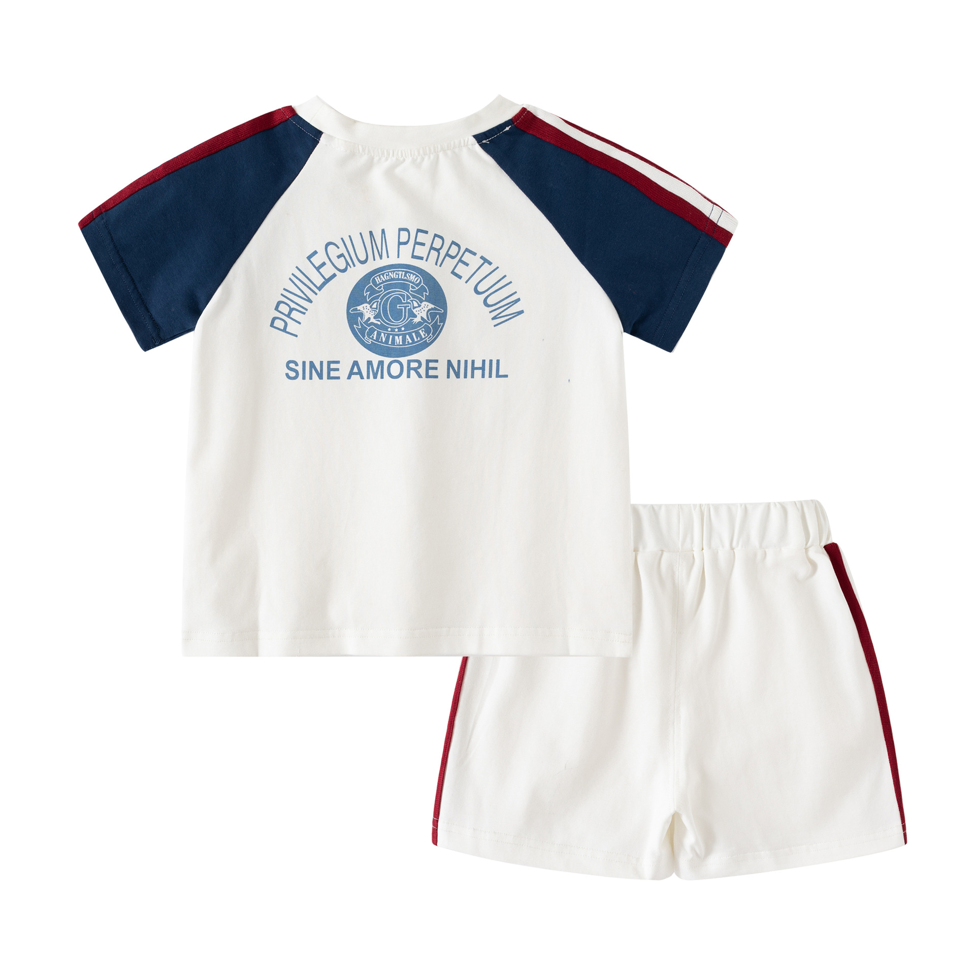 여름 새 소년 세트 한국 캐주얼 컬러 매칭 반팔 티셔츠 반바지 아기 트렌디 한 머리 투피스 세트