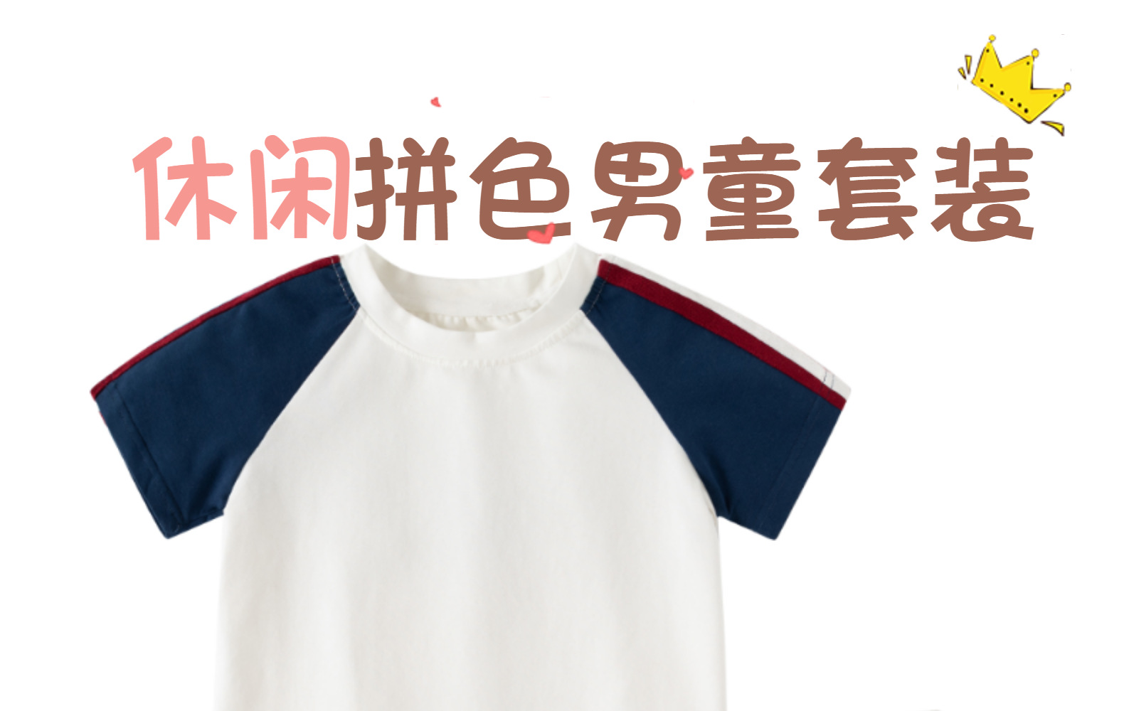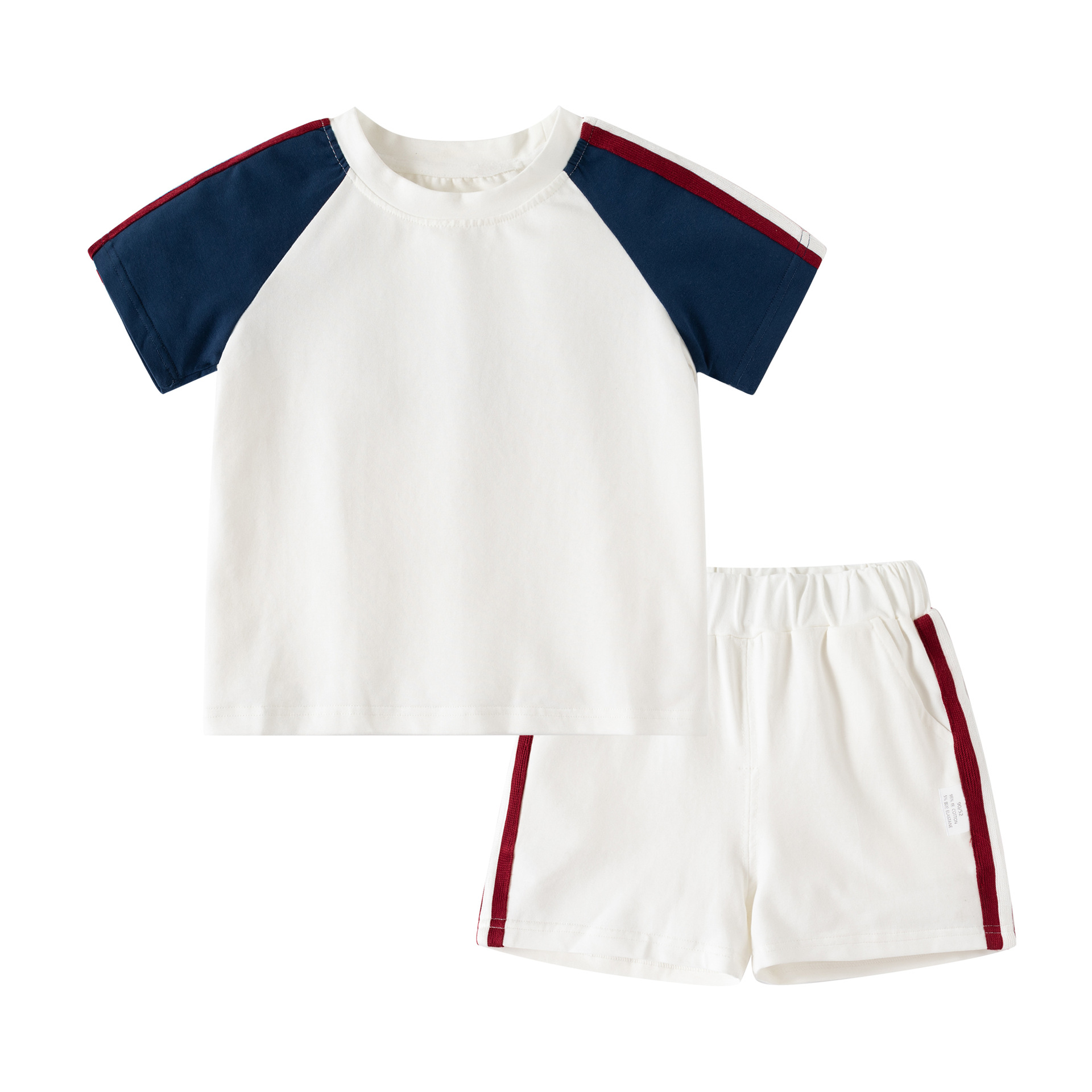 여름 새 소년 세트 한국 캐주얼 컬러 매칭 반팔 티셔츠 반바지 아기 트렌디 한 머리 투피스 세트스토어 가기