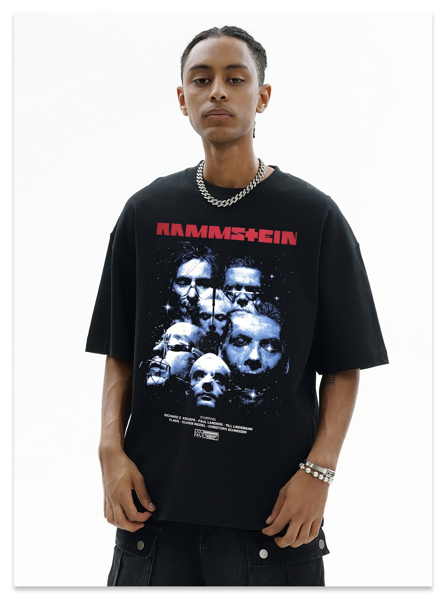 국경 300g 무거운면 반소매 티셔츠 남성용 미국 복고풍 패션 브랜드 스트리트 탑 빈티지 남성 반소매