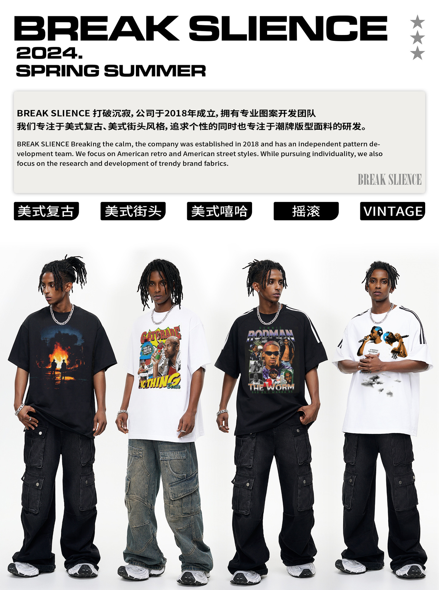 국경 300g 무거운면 반소매 티셔츠 남성용 미국 복고풍 패션 브랜드 스트리트 탑 빈티지 남성 반소매스토어 가기