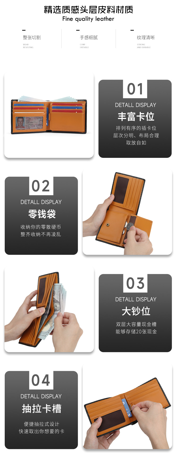 아마존 대용량 탄소섬유 지갑 남성용 이중 접이식 도난 방지 동전 지갑 RFID 가죽 지갑 남성용스토어 가기