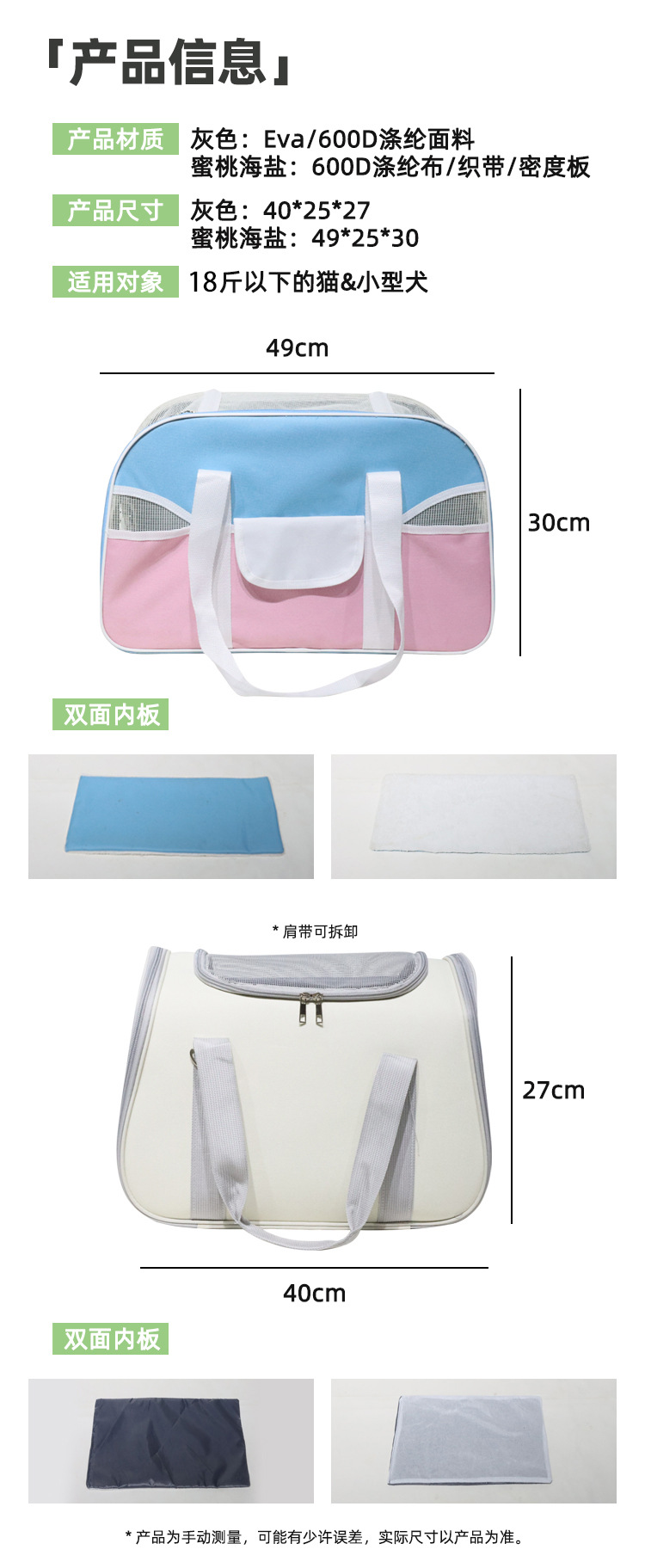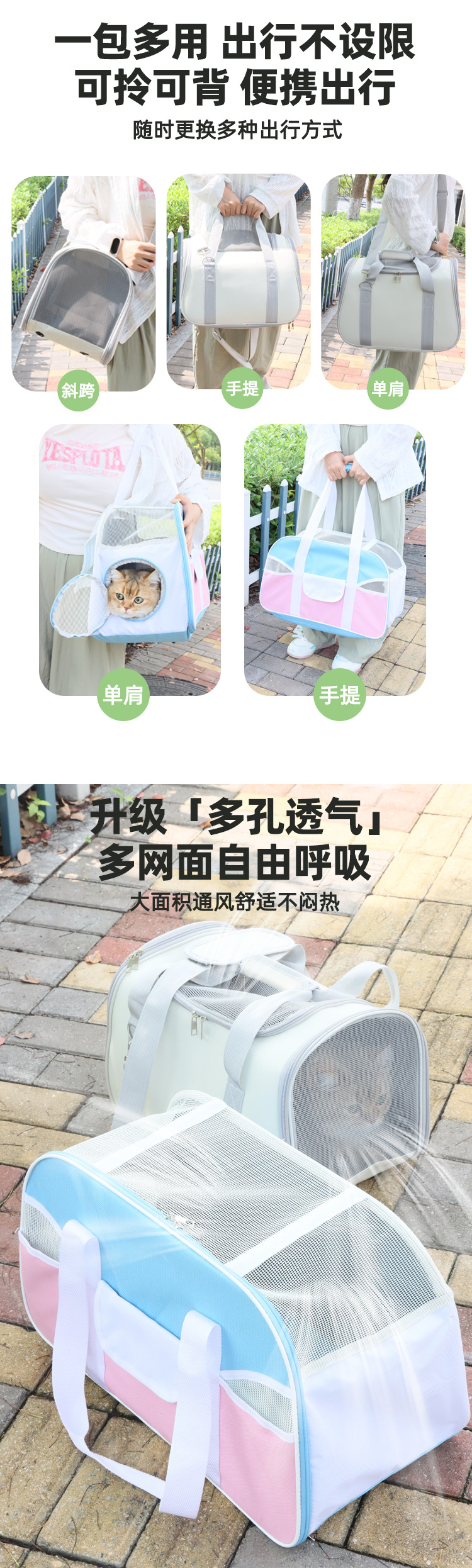 새로운 복숭아 어깨 나들이 두꺼운 휴대용 고양이 가방 대용량 고양이 여행 크로스 바디 통기성 휴대용 애완 동물 가방