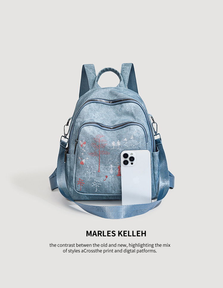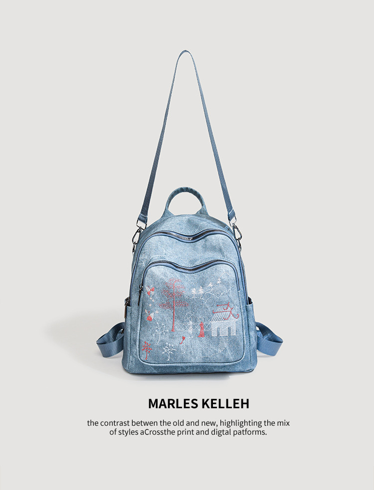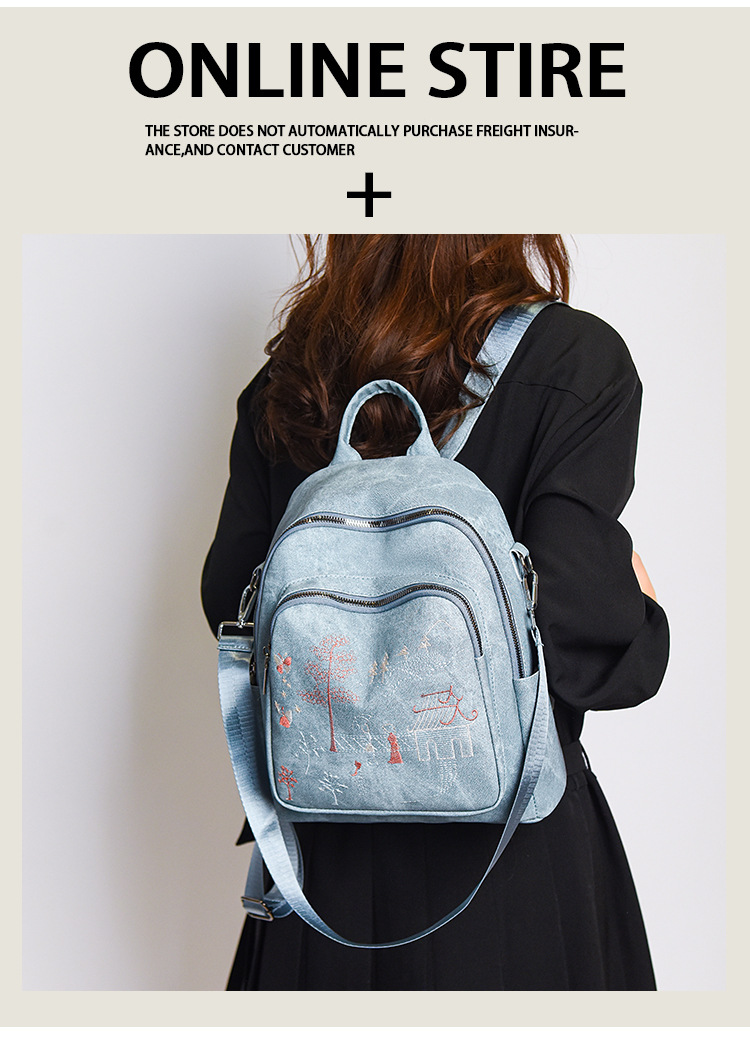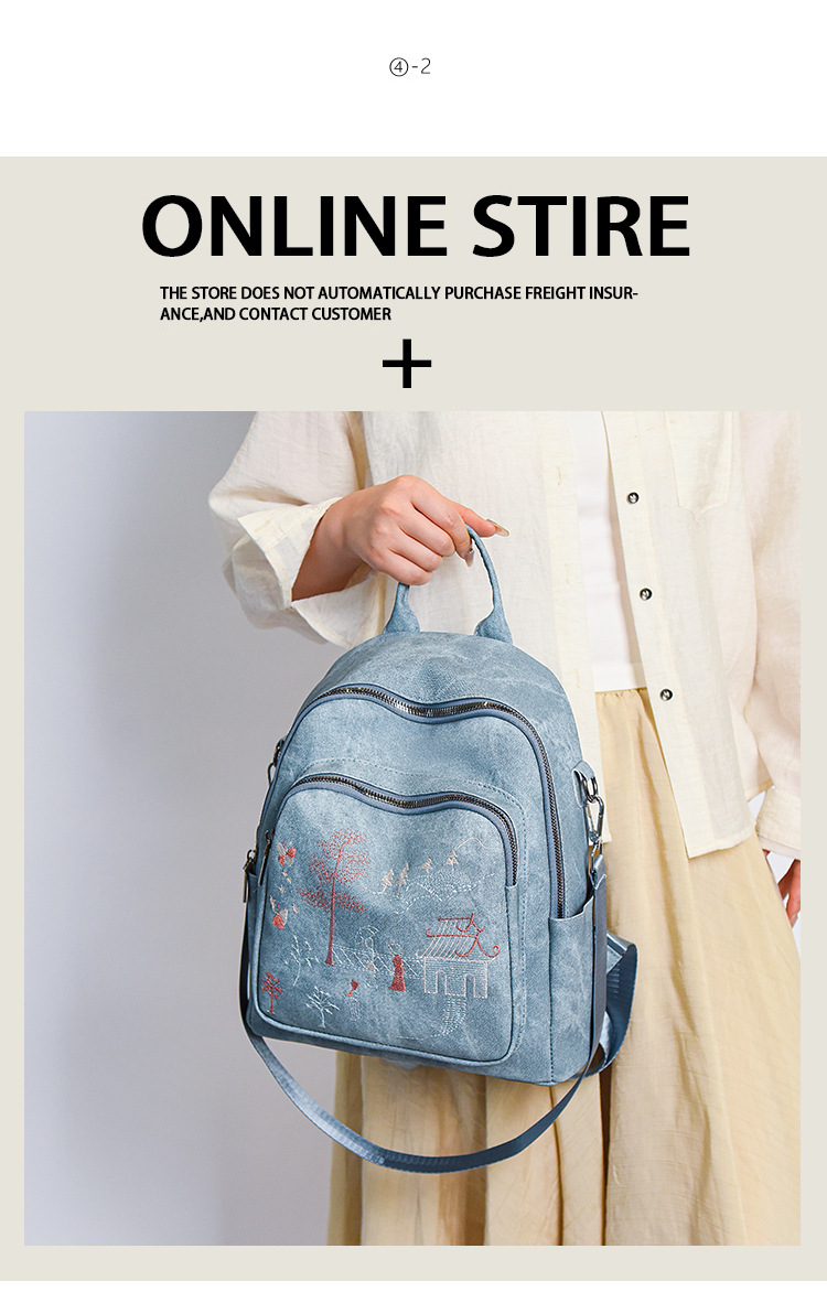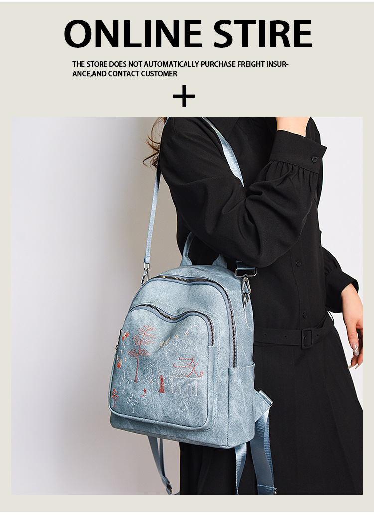 대용량 배낭 여성용 PU 가죽 새로운 경량 듀얼 사용 캐주얼 여행 배낭 유행 자수 어깨 가방스토어 가기
