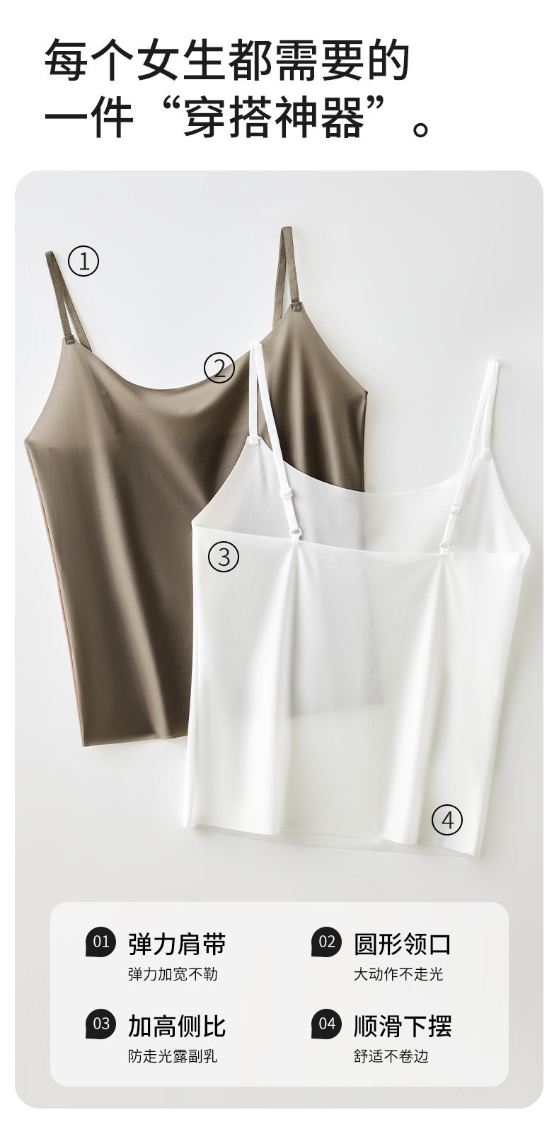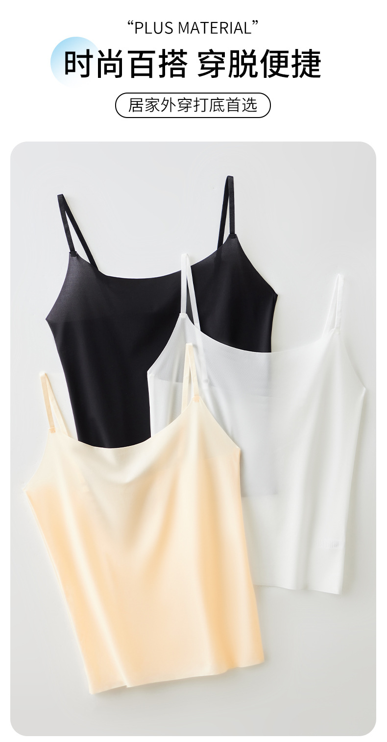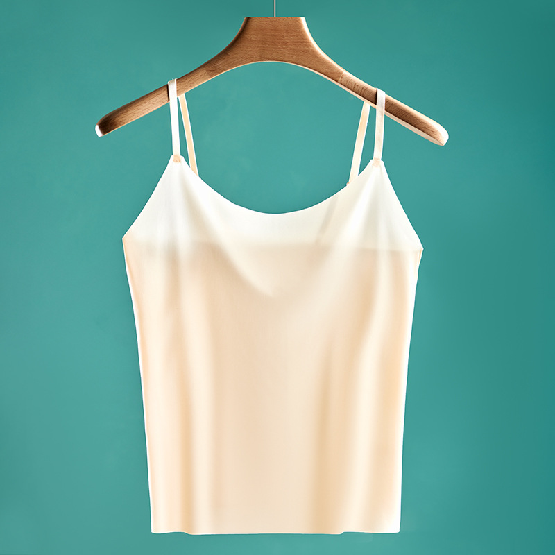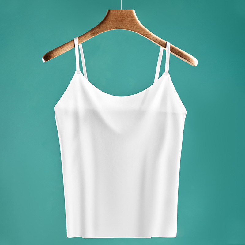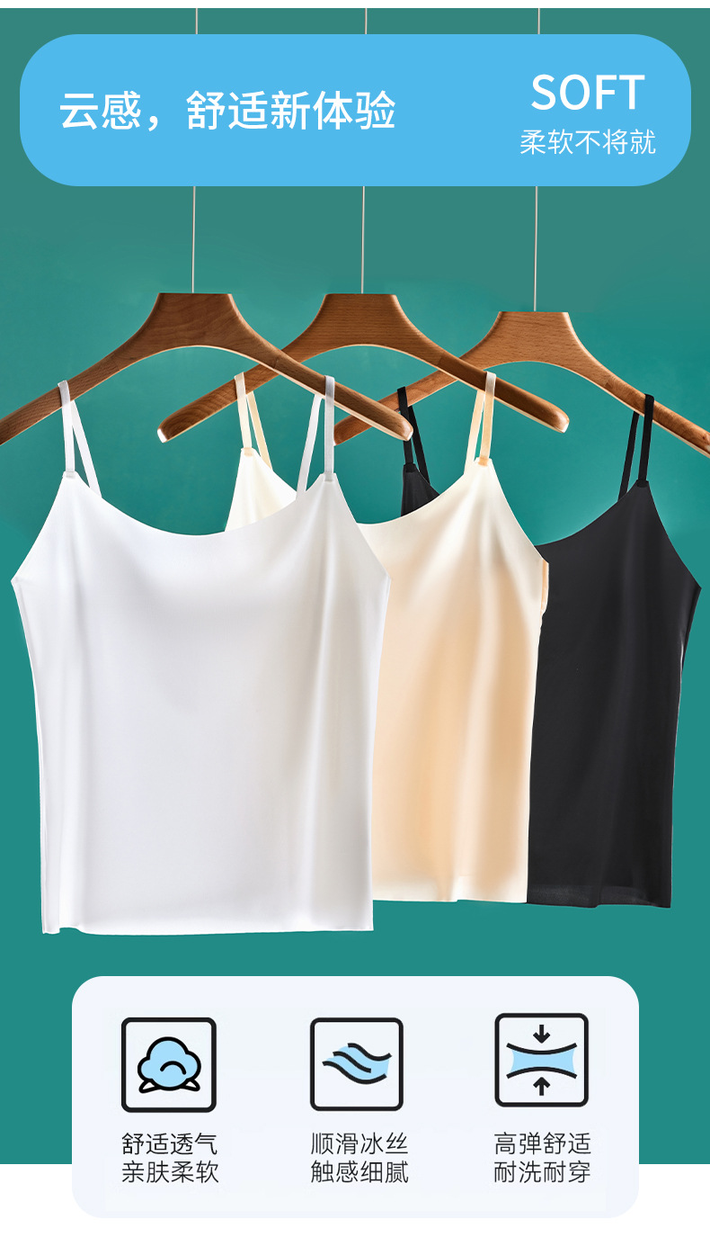 원활한 아이스 실크 얇은 카미 솔 여성용 내면베이스 셔츠 안티 러닝 루즈 화이트 여름 얇은 비 유방 패드 탑