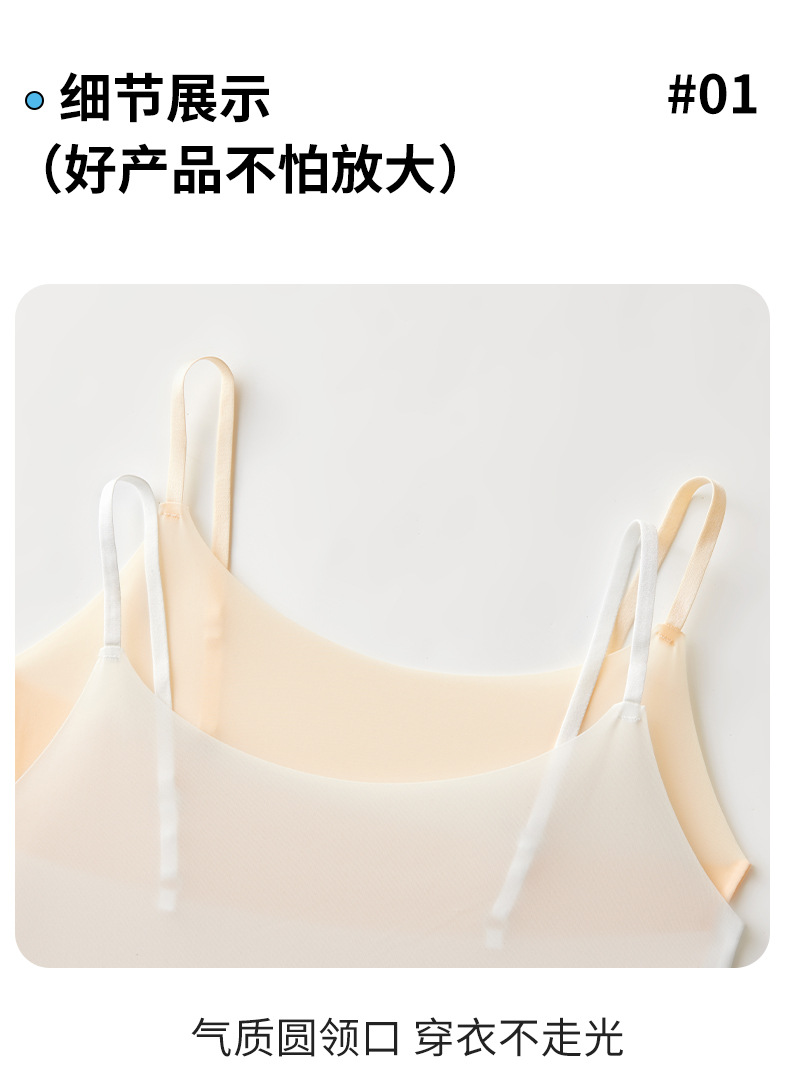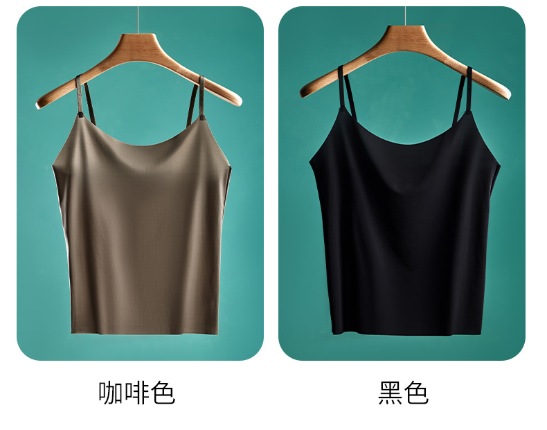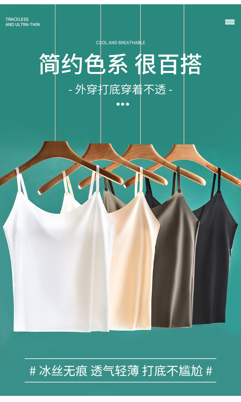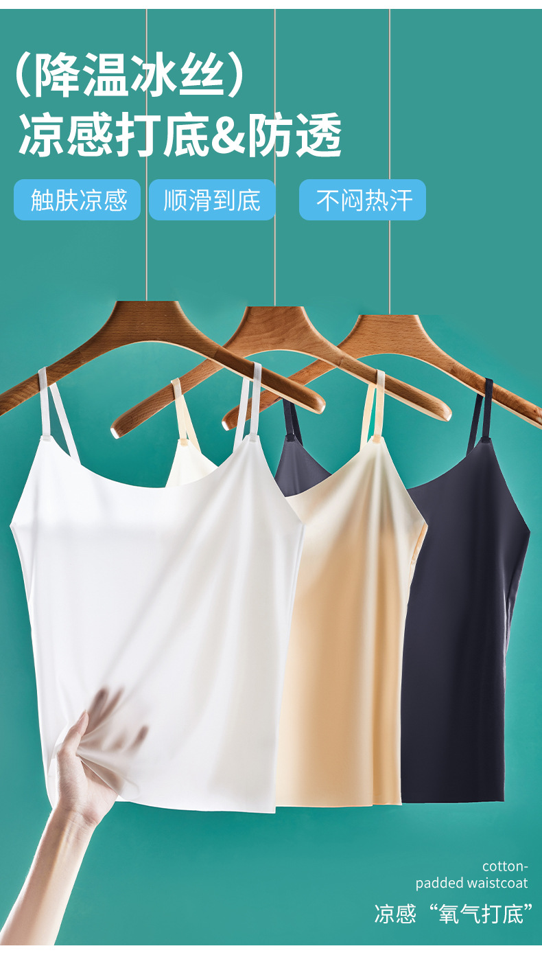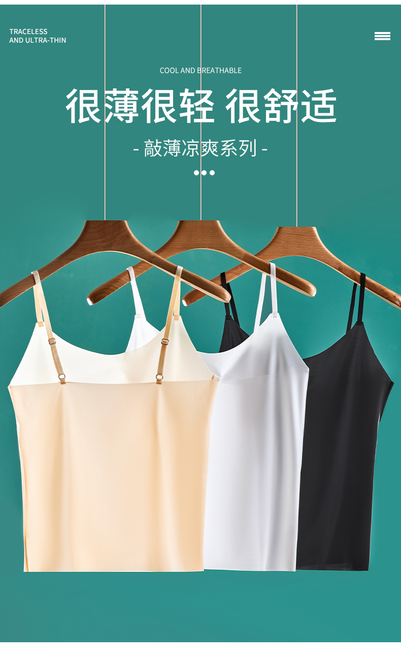 원활한 아이스 실크 얇은 카미 솔 여성용 내면베이스 셔츠 안티 러닝 루즈 화이트 여름 얇은 비 유방 패드 탑