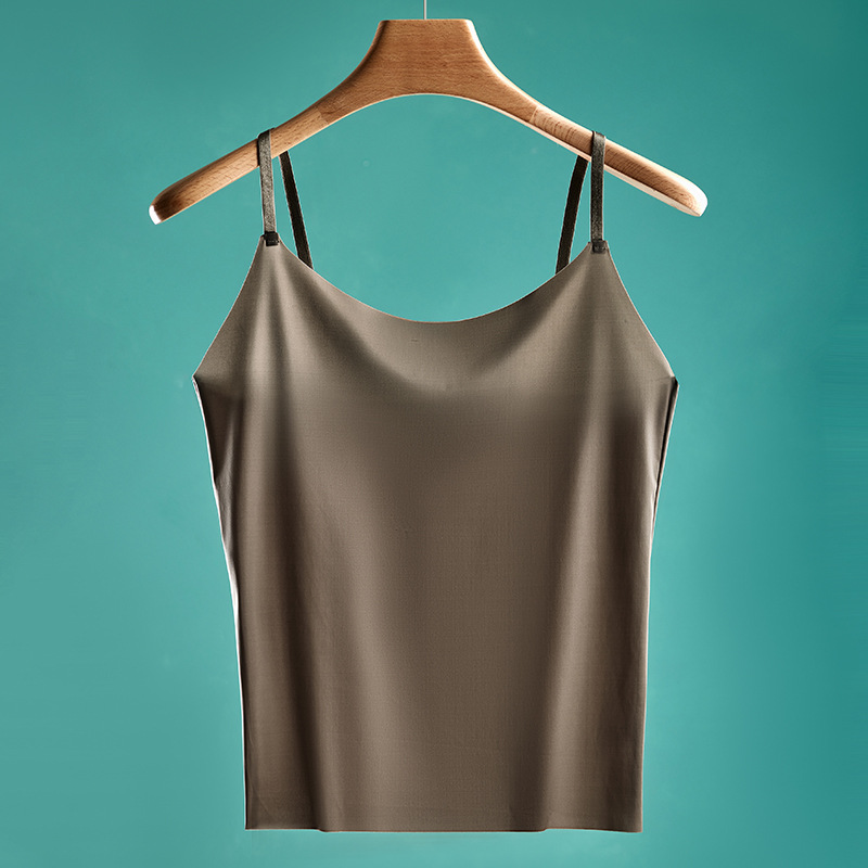 원활한 아이스 실크 얇은 카미 솔 여성용 내면베이스 셔츠 안티 러닝 루즈 화이트 여름 얇은 비 유방 패드 탑스토어 가기