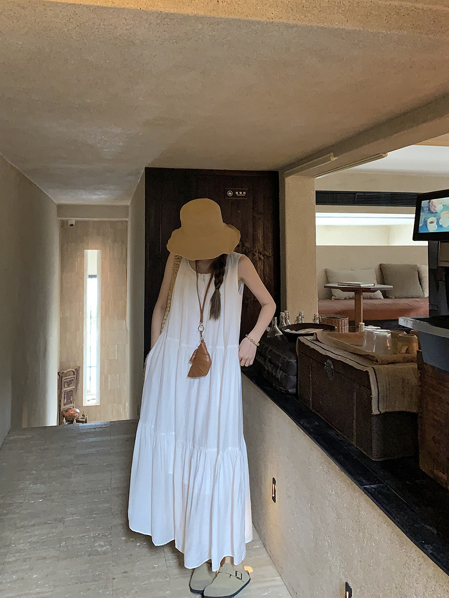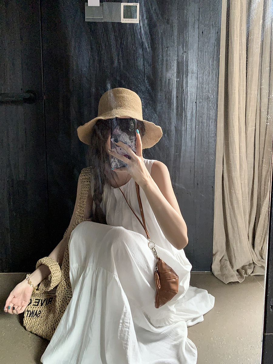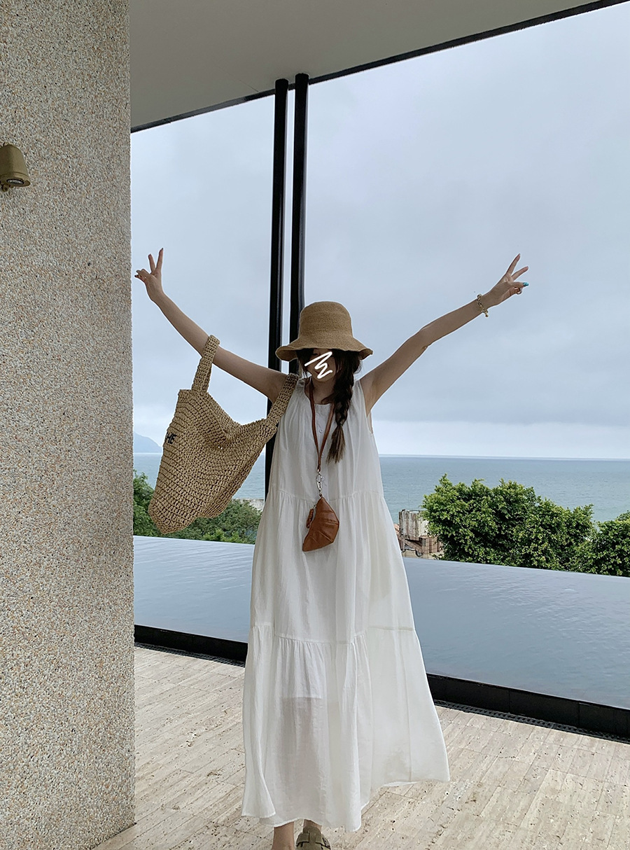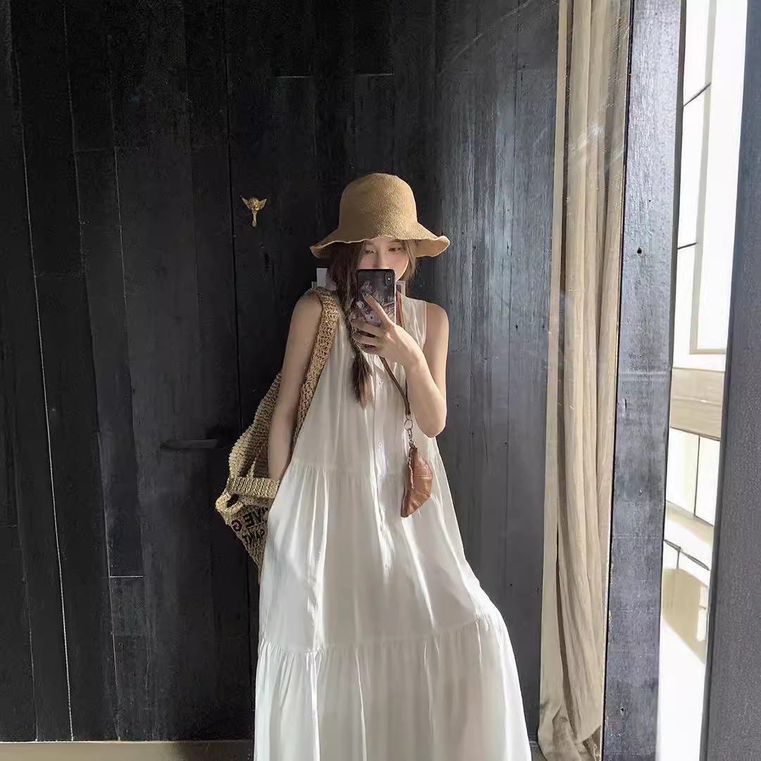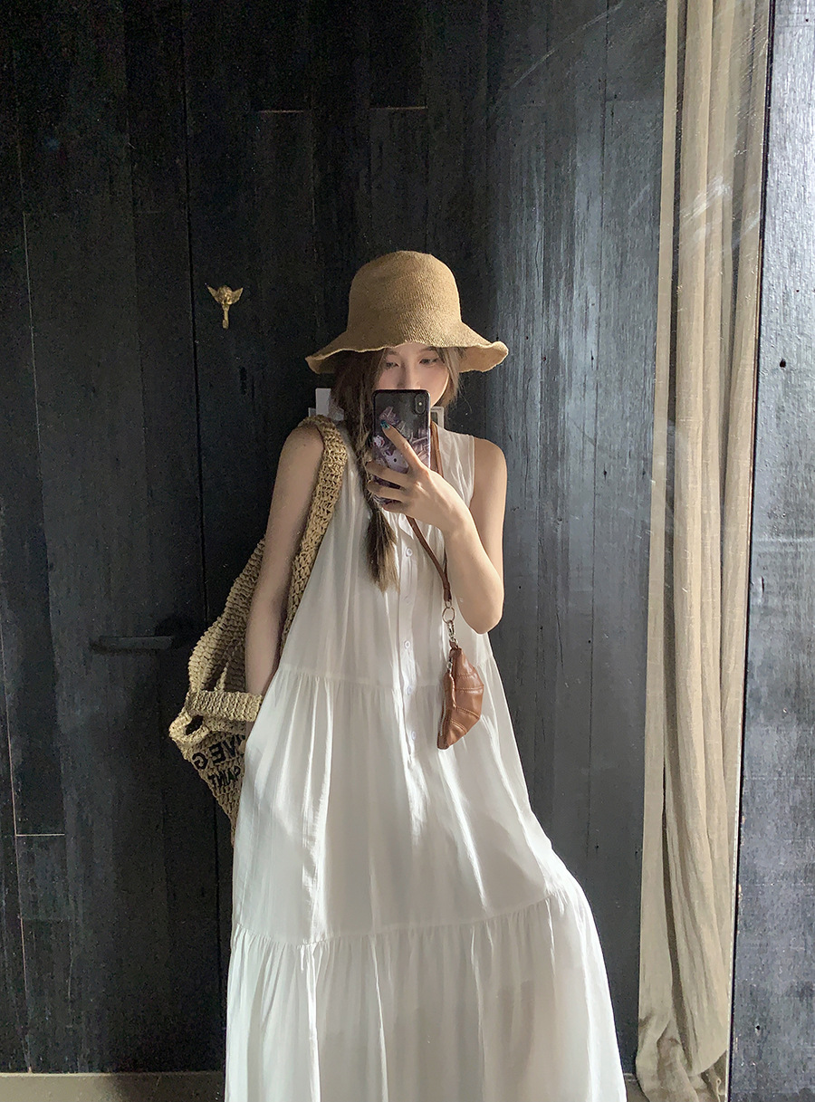 진짜 샷 디자인 감각 틈새 느슨한 슬림 원피스 여성 여름 느슨한 질감 센스 조끼 긴 스커트 66593스토어 가기