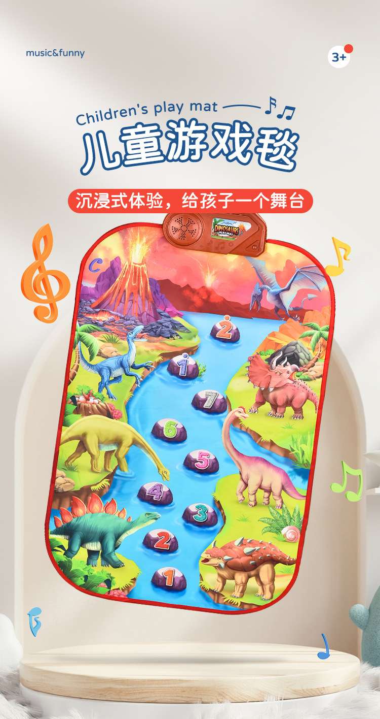 국경 간 어린이 다기능 춤 담요 공룡 교통 테마 소리 인식 게임 담요 조기 교육 교육 퍼즐 춤 담요