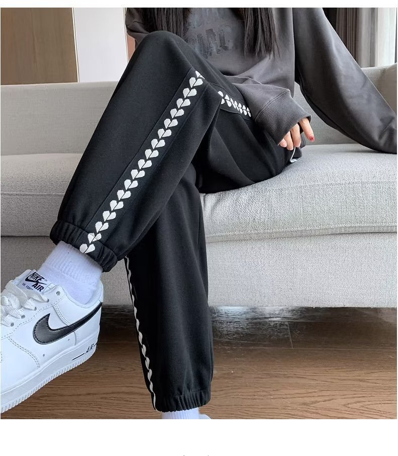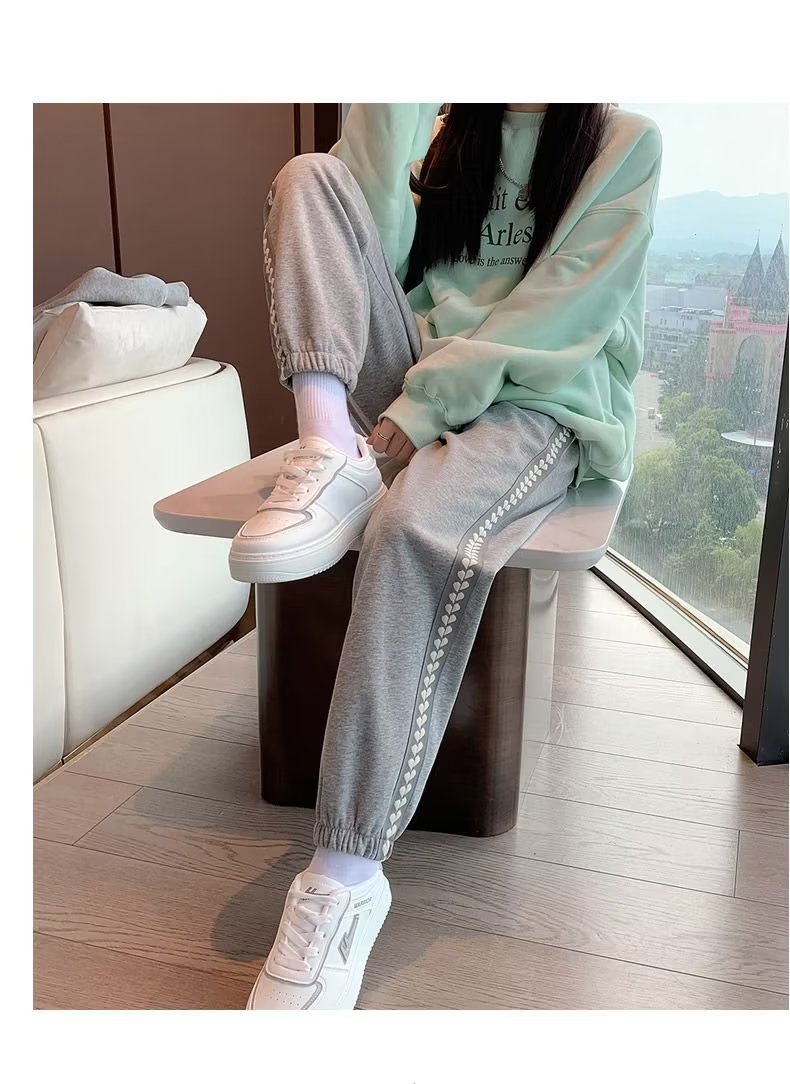 소녀 바지 봄과 가을 2024 새로운 도착 대형 어린이 바지 스포츠 바지 리본 사랑 운동복 봄 바지스토어 가기